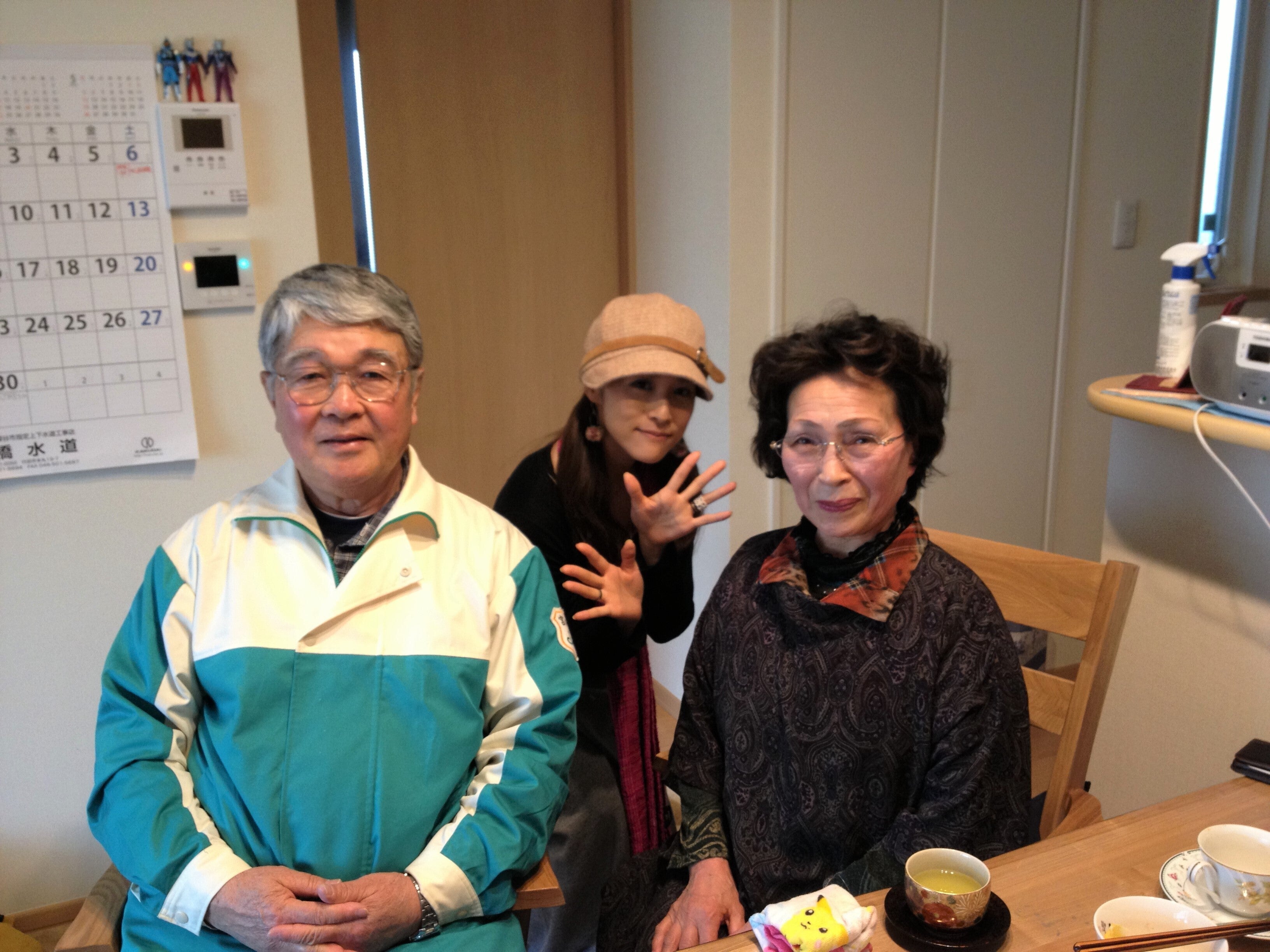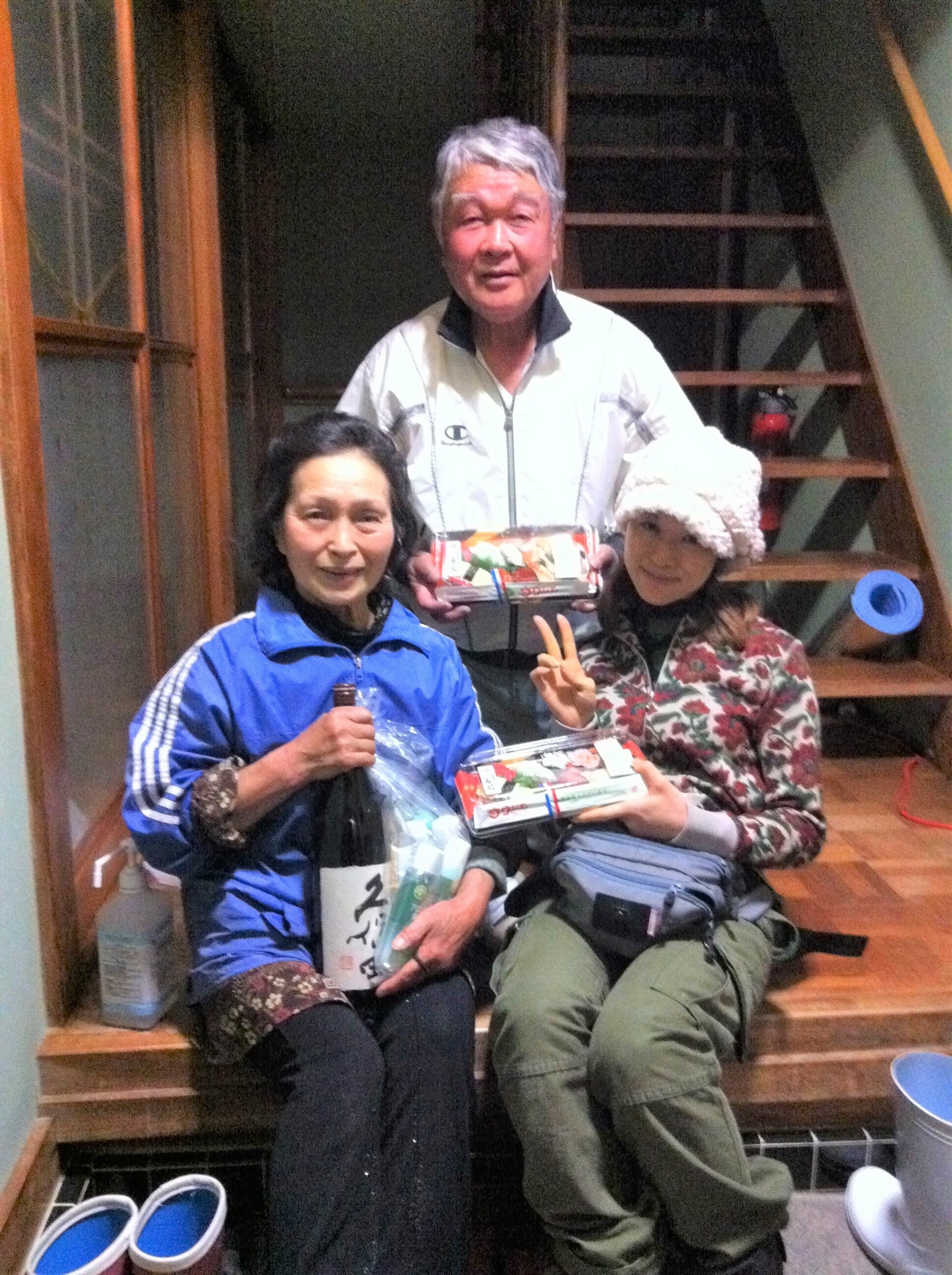 「またお寿司とお酒、持ってきました〜!」と言うと、「あれあれまあああ、嬉しいねええ、せっかくだから一緒にご飯食べて行けば?」とお誘い頂いてしまい、「え、いいんですか!?」と厚かましさ全開でノリノリ。