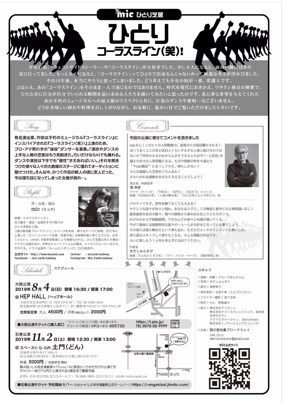 この度、micのひとり芝居コメディ「ひとりコーラスライン(笑)!」が、