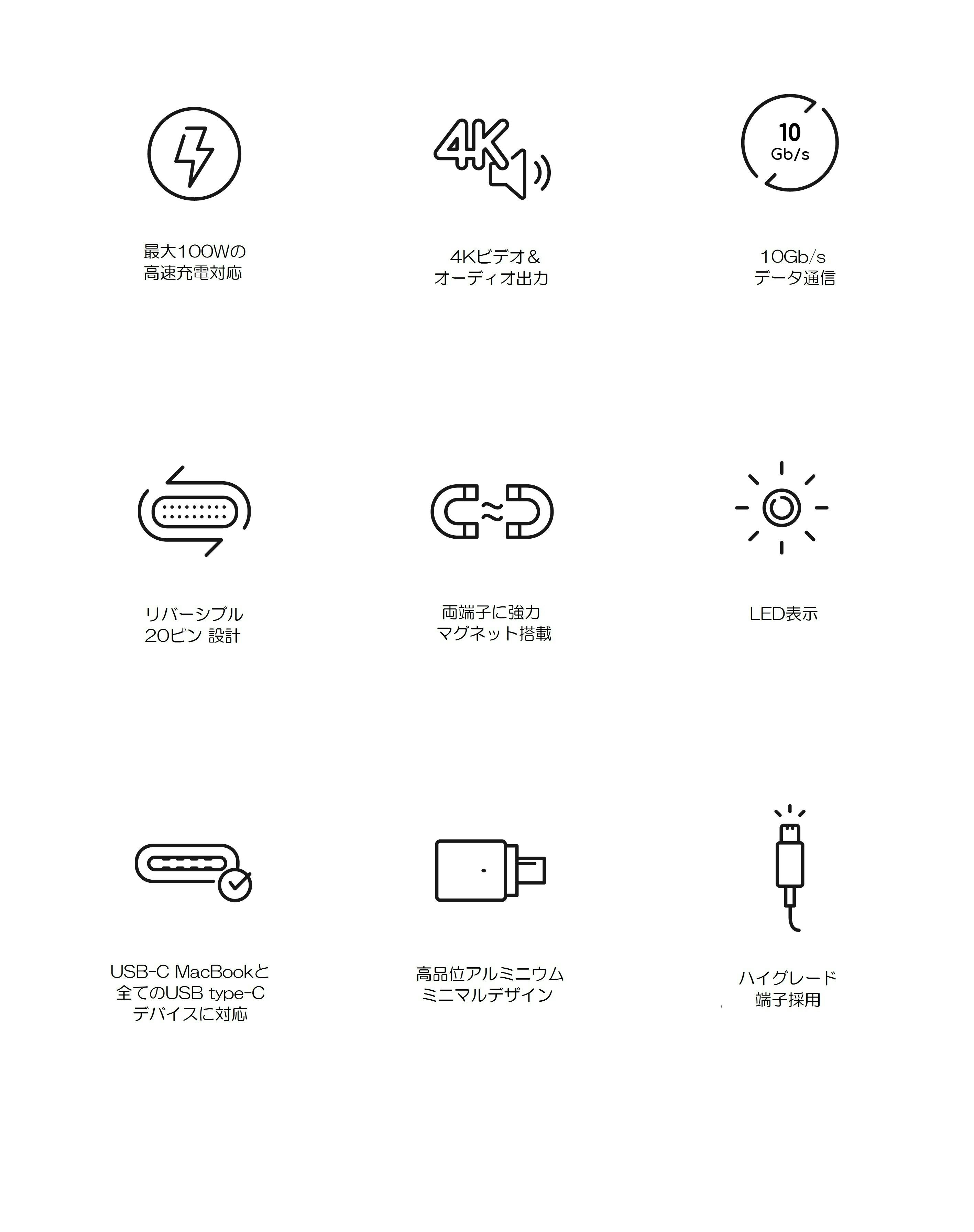 Magtop Proは、単なる電源アダプターではありません。最先端の技術仕様を備えた充電およびデータ/ビデオ転送ソリューションを提供する、機能に妥協のないマグネットアダプターです。
