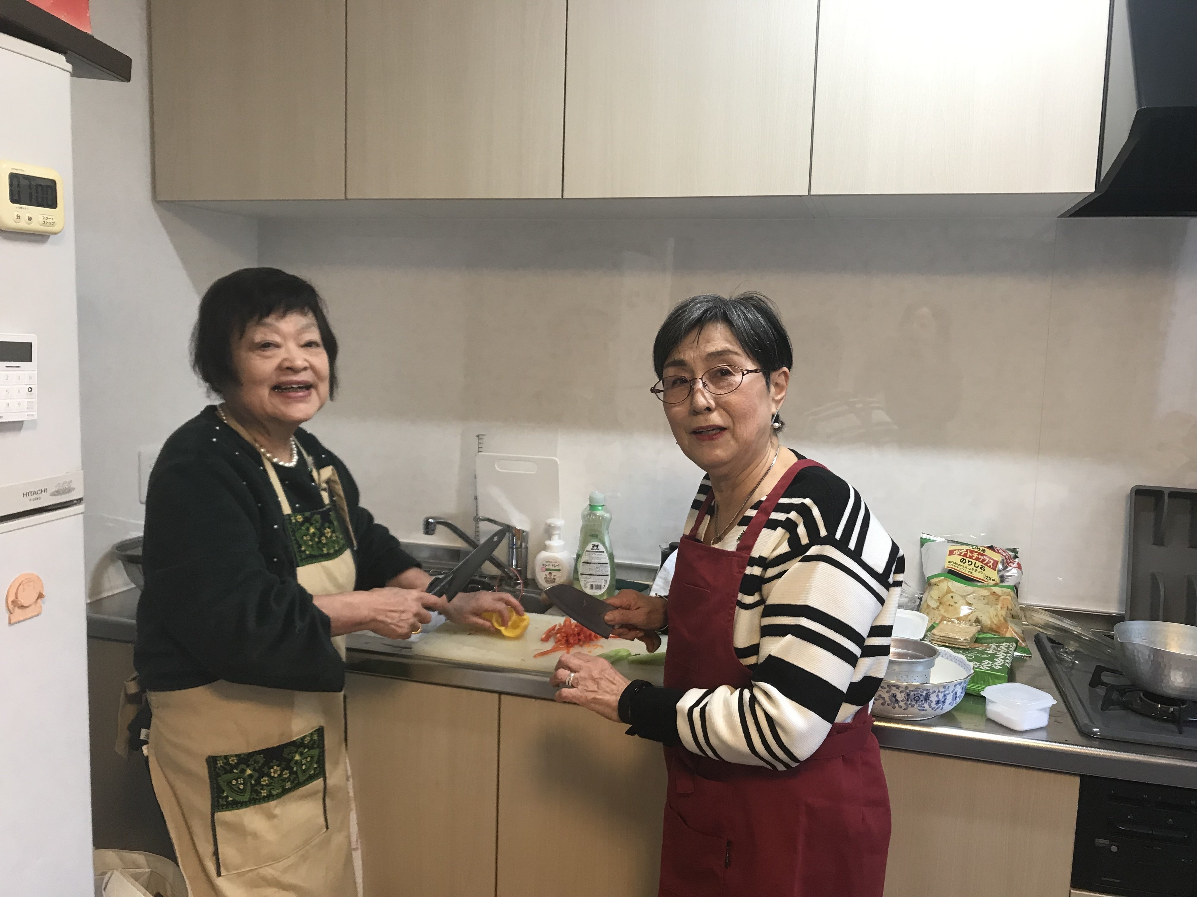 (OSDサロン~年忘れパーティーの準備中:カウンセラー2名)