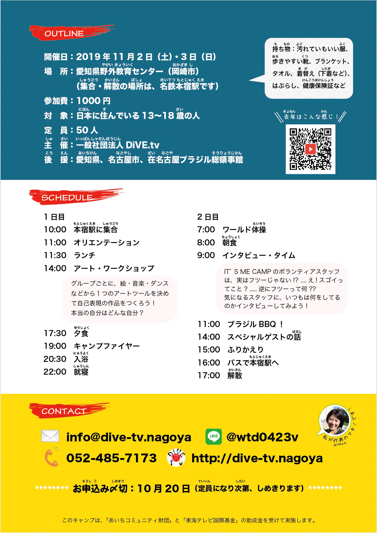 3回目となる今年は、11月2日(土)〜3日(日)に愛知県野外教育センター(岡崎市)にて、県内のブラジル人学校・朝鮮学校・夜間中学・公立中学校・公立/私立高校・専門学校などに通う約50人が集まります。