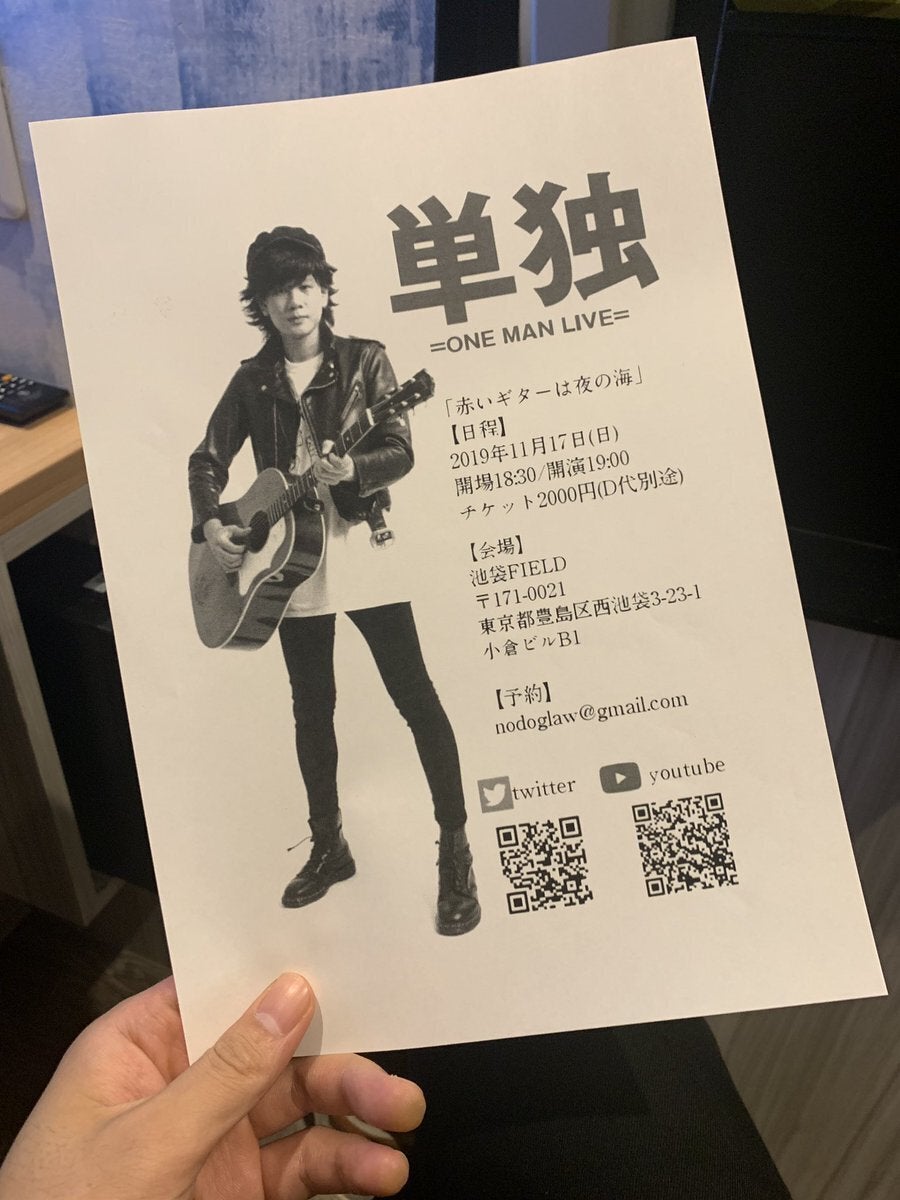 2019年11月17日(日)に池袋FIELDでレコ発単独ライブを開催するため、お勧めする喉黒一のオリジナル曲をCD化して応援してくれているファンの方々の手元に届けたい。