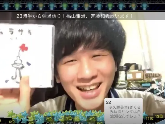 毎日 喉黒一のオリジナル曲やカバー曲を披露しています。でも喉休めの日もあってトーク配信もしています。トークも飽きさせない才能があって、何故か弾き語り配信よりフォロワーさんが増えてしまうのです。