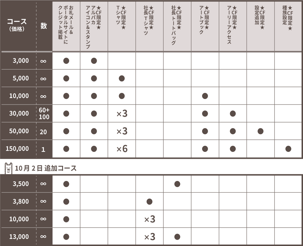 ◆プロジェクトスタート後、プロジェクトに関するご連絡は、CAMPFIRE内のメッセージにてプロジェクトオーナーより送付されます。ご支援後は必ずメールのチェックをお願い致します。