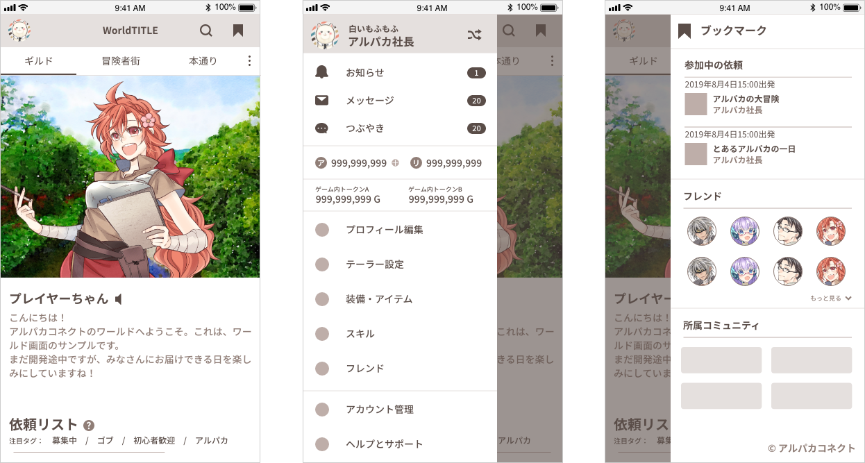 キャラクターの作成後は、イラストレーターへのイラスト発注、コミュニティの作成など、その他の制限は無しでアクセスすることが可能です。