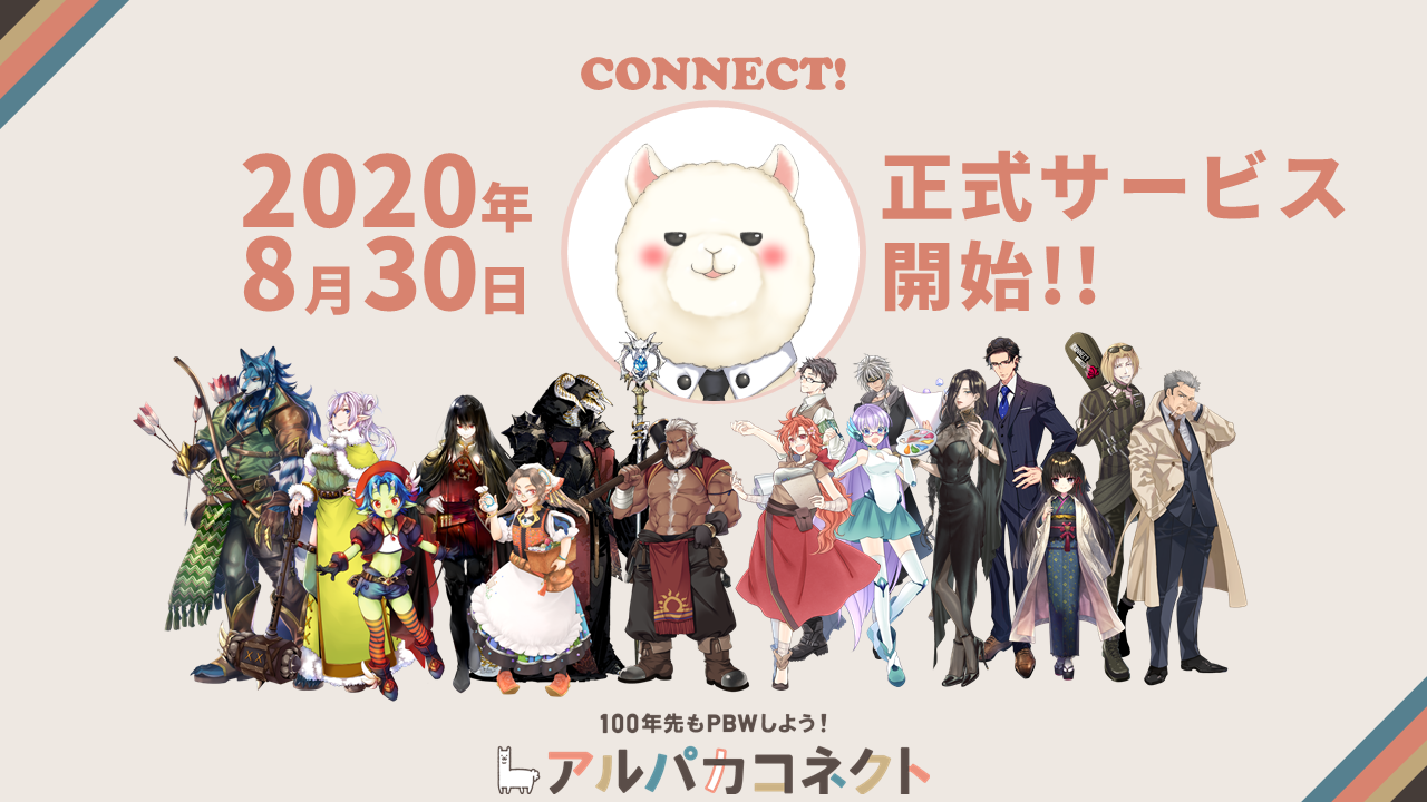 お世話になっております。アルパカコネクト運営です。 大変お待たせいたしました。また、ご報告が遅くなり申し訳ございません。アルパカコネクトは、2020年8月30日(日)にサービスを開始いたしました。▼アルパカコネクト サービスサイトhttps://alpaca-connect.com/ここまで来ることができましたのは、ひとえにあたたかなご支援をくださった皆さまのおかげです。本当にありがとうございます。一方で、現在はご利用いただけるコンテンツも少なく、また不具合が残っている状況で、アルパカコネクトが目指す「100年先まで続くPBWプラットフォーム」の実現には遠い状態です。今後は順次不具合の対応を進め、合わせて各コンテンツをオープンしていく予定です。当初掲げておりました「プレイヤー、クリエイター、マスター、運営者、PBWに関わるすべての人のためのPBWプラットフォーム」を実現するため、アルパカコネクトは努力を続けてまいります。ぜひ、引き続き見守っていただけましたら幸いです。また、不具合対応の影響で、支援者さまへのデジタル特典(アルパカアイコン、スタンプ等)の配布には今しばらくかかる見込みです。誠に申し訳ございませんが、お待ちいただけますと幸いです。今後とも、アルパカコネクトをよろしくお願い申し上げます。