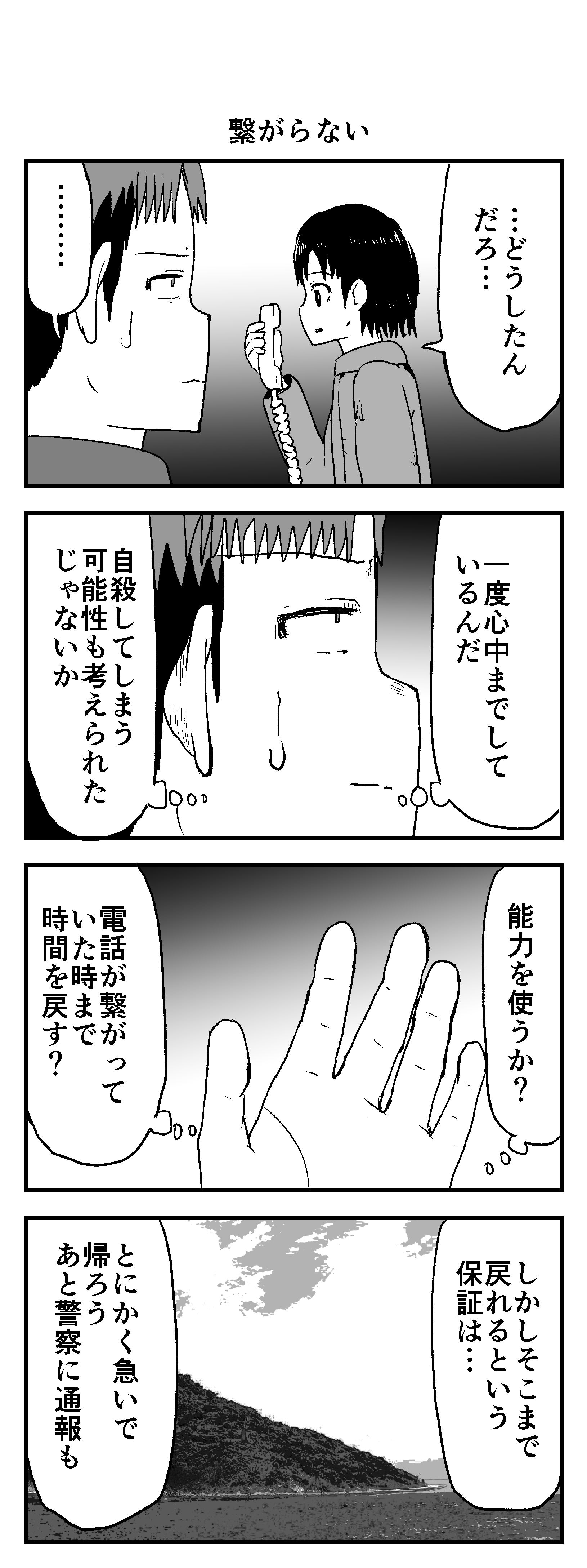 今回一番ネーム(話)を悩んだかもしれません。前回の48話、電話が繋がらないという時点では全く違う展開を考えていました。いただくコメントの中でも正解がいくつもありました。