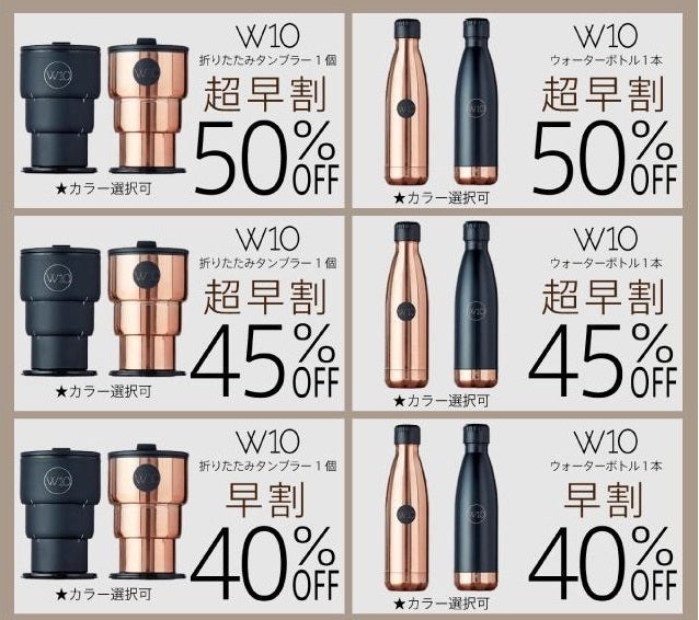 ステンレス製W10ウォーターボトルもご用意!