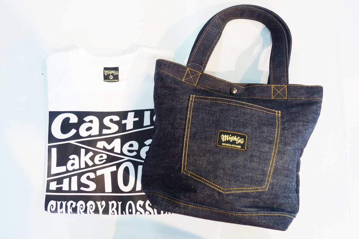 WE LOVE HIKONE TEE 1枚と中型デニムトートバッグにあなたのお名前やイニシャルなどの刺繍を入れて製作させていただきます。