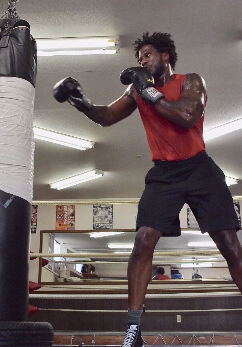 プロテストを控えた2mの超大型ヘビー級黒人ボクサー