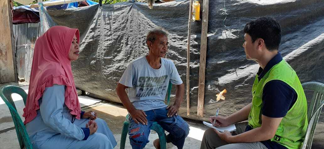 「私と私の妻は、地震が起きた時違う場所にいました。私は浜辺で漁の準備をしていて、妻は道端で魚を売っているところでした。私は足が悪いため地震が起きた直後、避難する事ができず、息子がバイクで向かいに来てくれるのを待ちました。息子と一緒に急いで家に戻ると、そこには私達の家の姿はなく、家の残骸があるだけでした。私達はパニックになりましたが、なんとか避難所に向かいました。