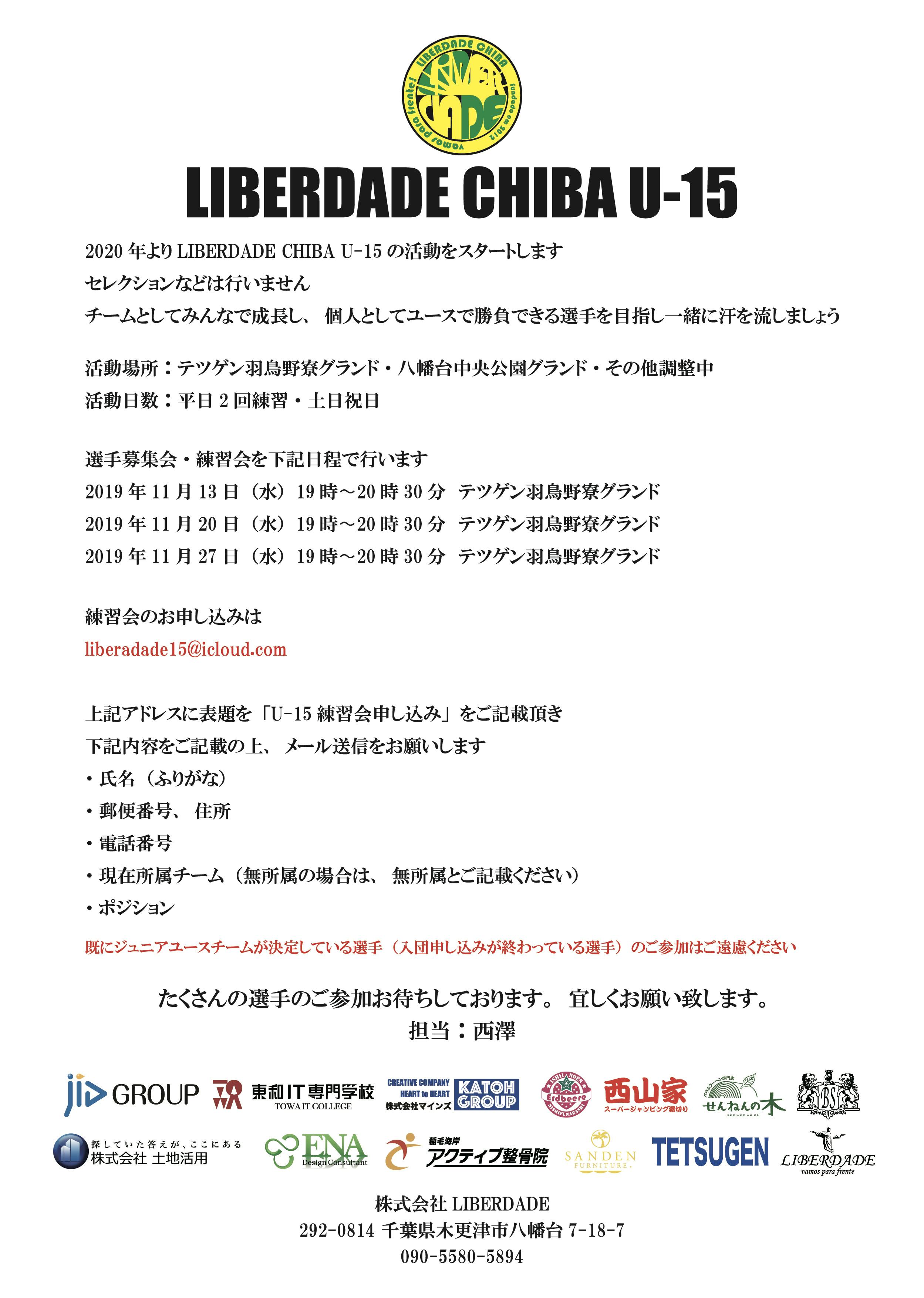 【LIBERDADE CHIBA U-15 練習会参加者募集】