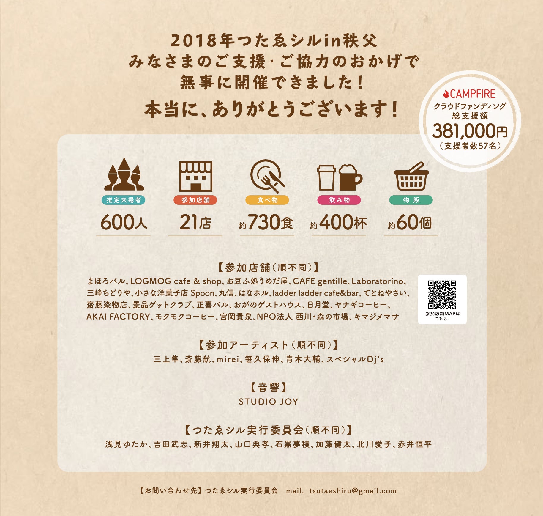 初開催にも関わらず、予想をはるかに超える人たちにお越しいただき、実行委員の僕たちも、ただただ嬉しかった2018年のつたゑシル。