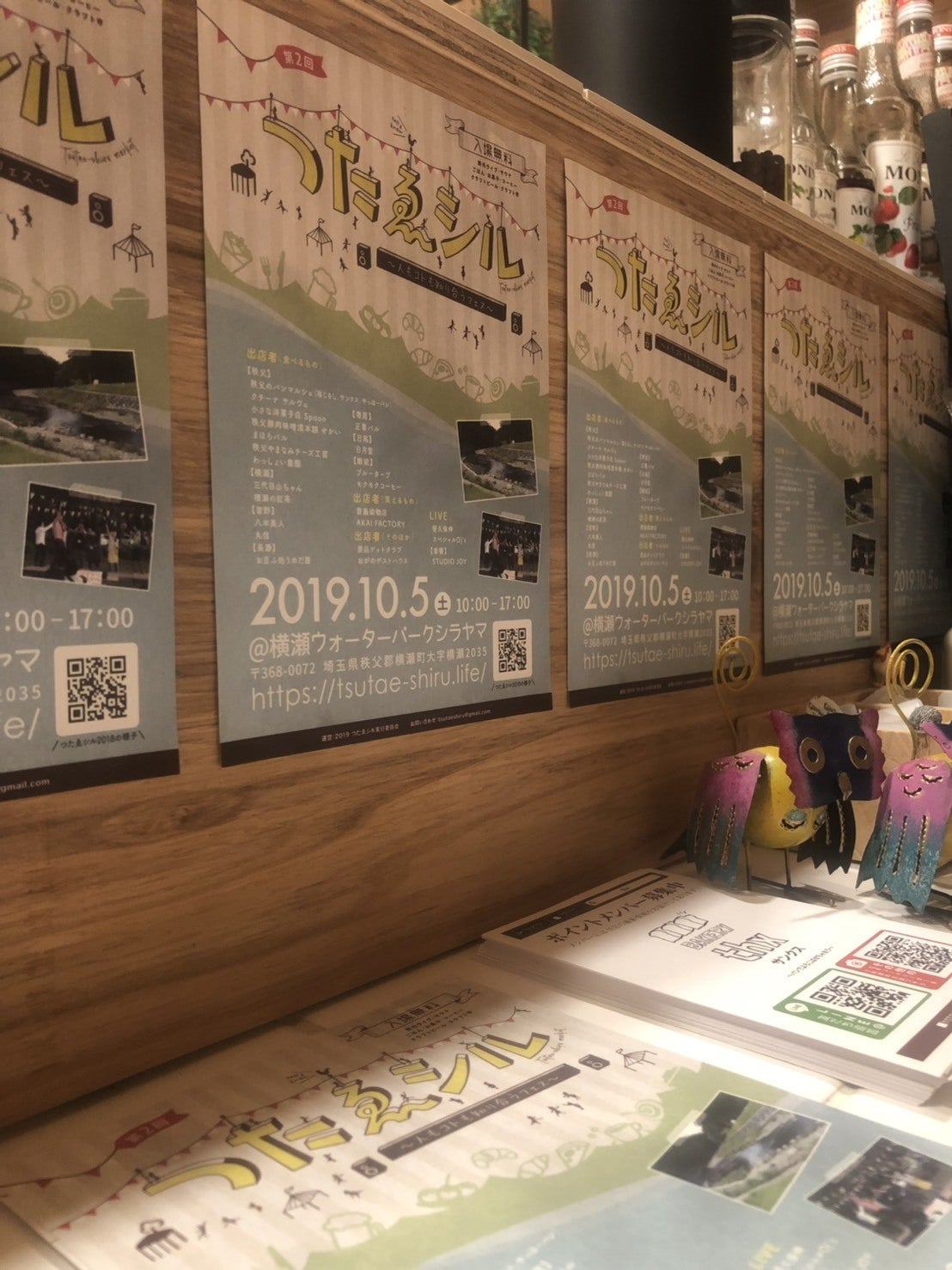 こんな感じで、秩父の街のお店やスポットに続々とつたゑシルの文字が登場しています。チラシ・ポスターのデザインもとても素敵なので(デザインはmalme.design)、お店にチラシを置くだけでお客さんの注目が集まるようです…!嬉しい〜