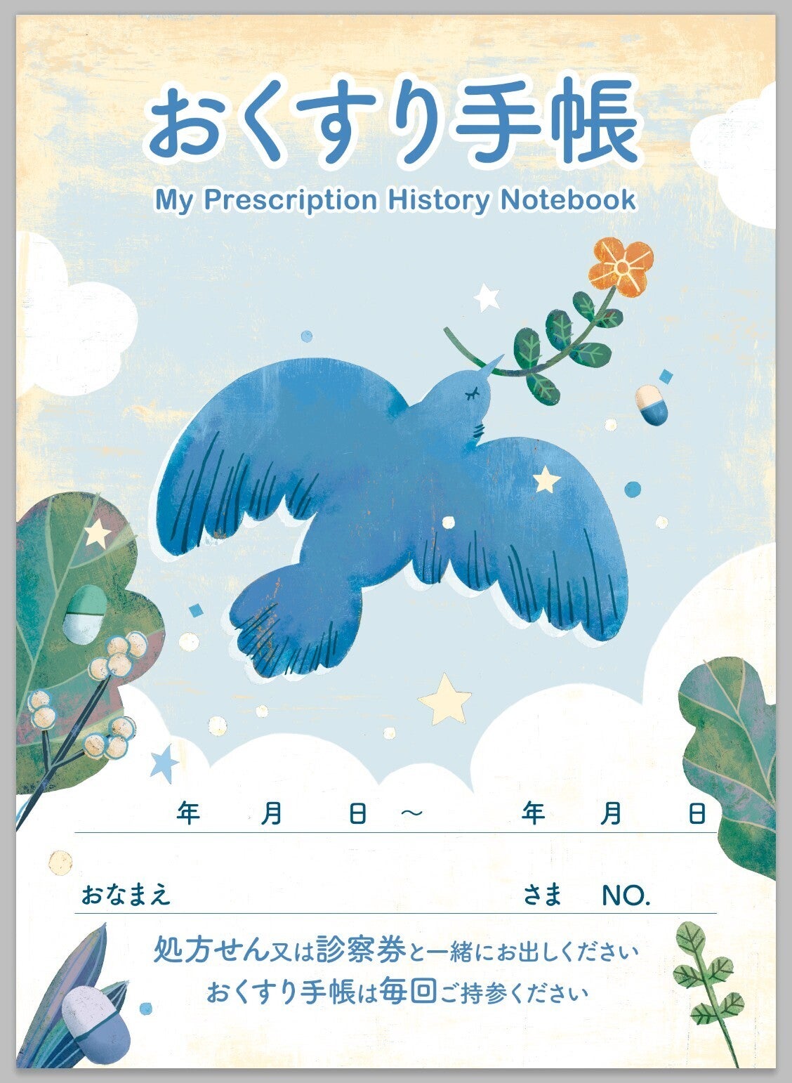 お薬手帳の表紙(Aタイプ)となっているイラストをプリント。