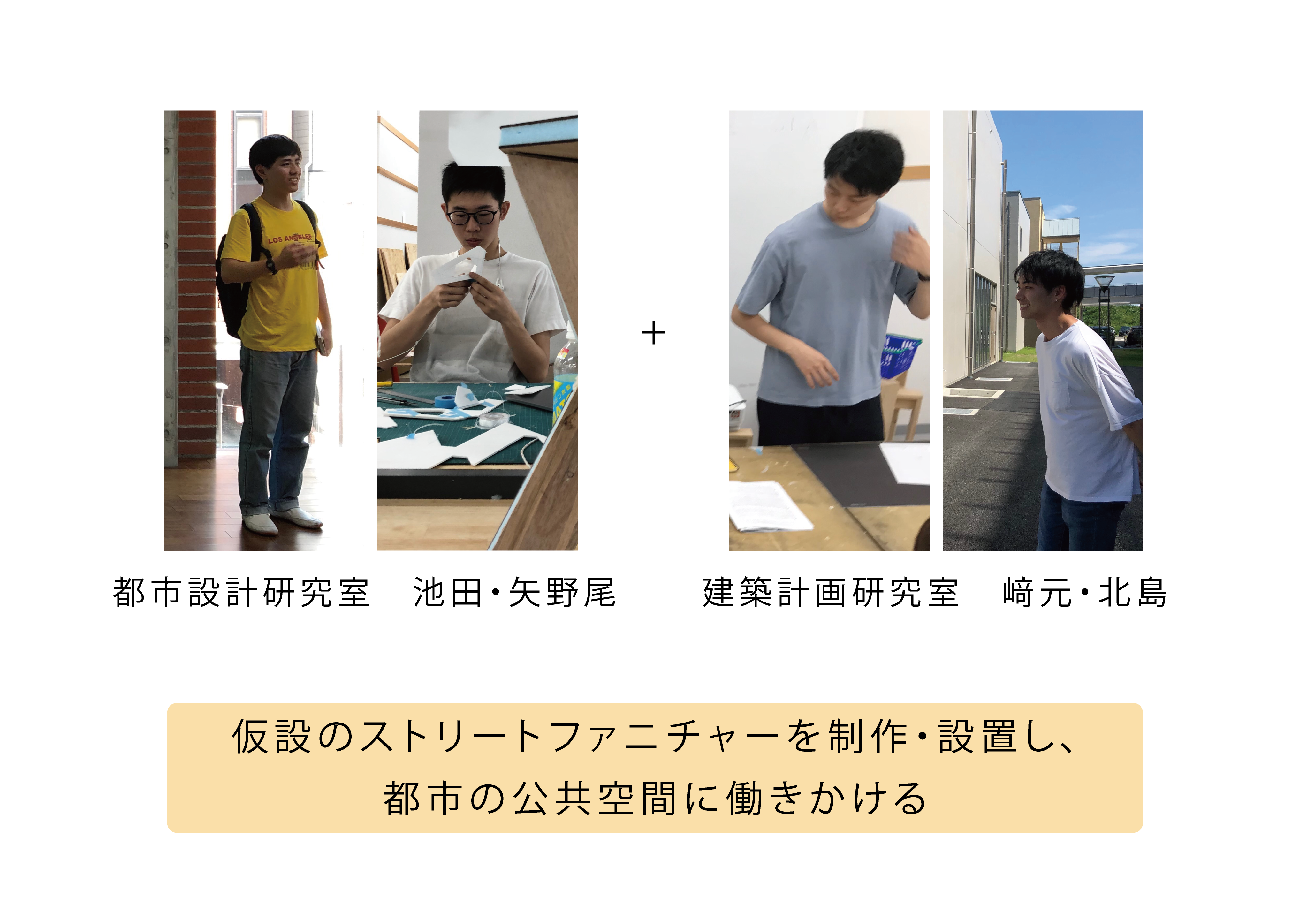 私は、まちの人が公共空間をもっと楽しく使いこなすための提案をしたいと考えています。そのために、これまで仮設のベンチやテーブルなどのストリートファニチャーを試作してきました。