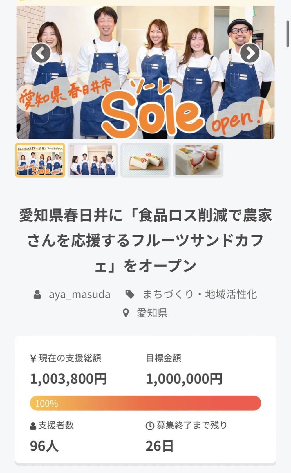 わずか開始1週間たたずで、第一目標の100万円を達成することが出来ました。ほんとにありがとうございます!!!!