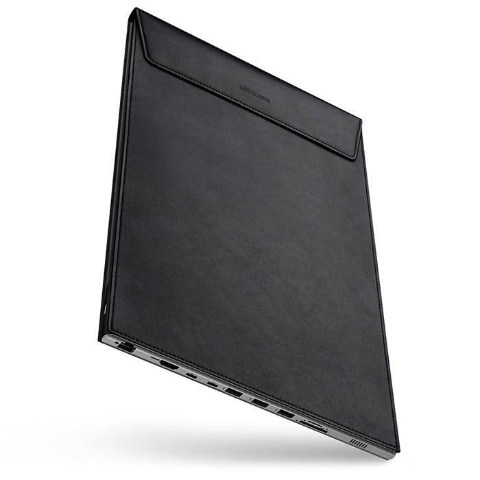 レザー製の保護キャリーケースと9つのドックステーションが一体化されたMacBookケースです。