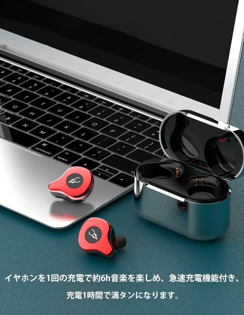 ※イヤホンを1回の充電で約6h音楽を楽しめ、急速充電機能付き、1時間で満タンになります。