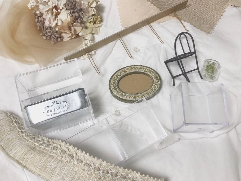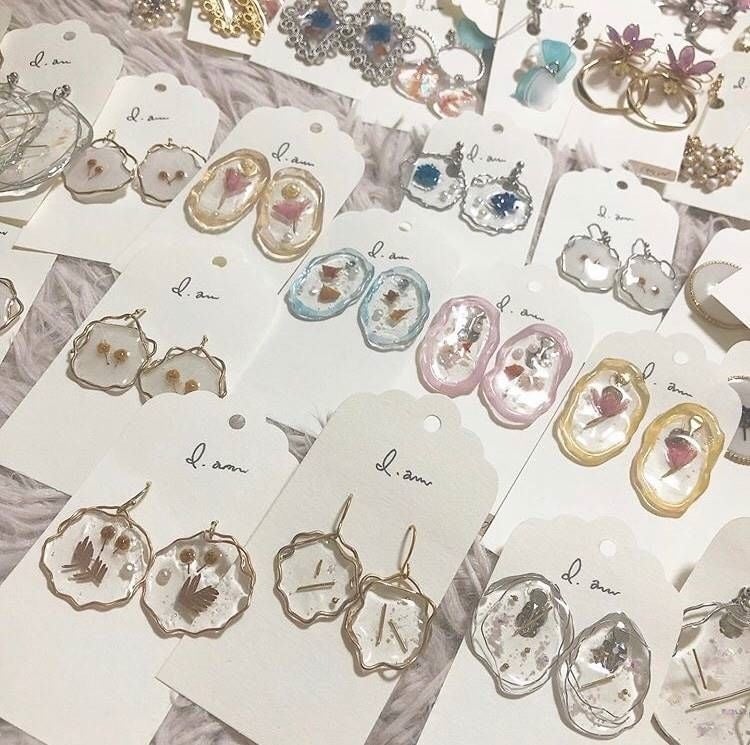 ドライフラワーをぎゅっと閉じ込めたレジンパーツ、海外のパーツやヴィンテージ物を使ったアクセサリーなど、色々なデザインでご用意しております