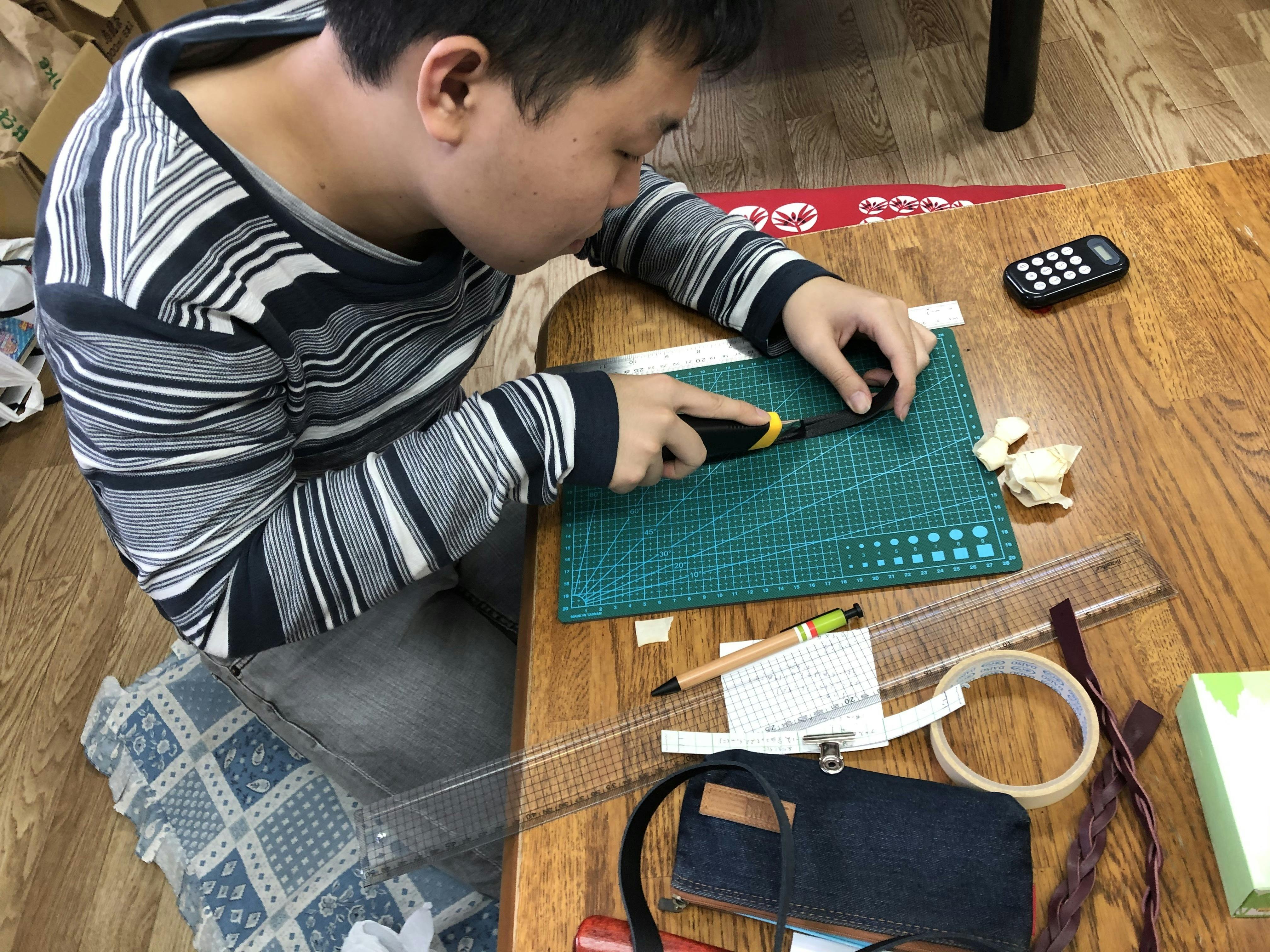 皮を使って1個1個手作りで作っているのですが皮に向かう顔はまさに職人ですね!
