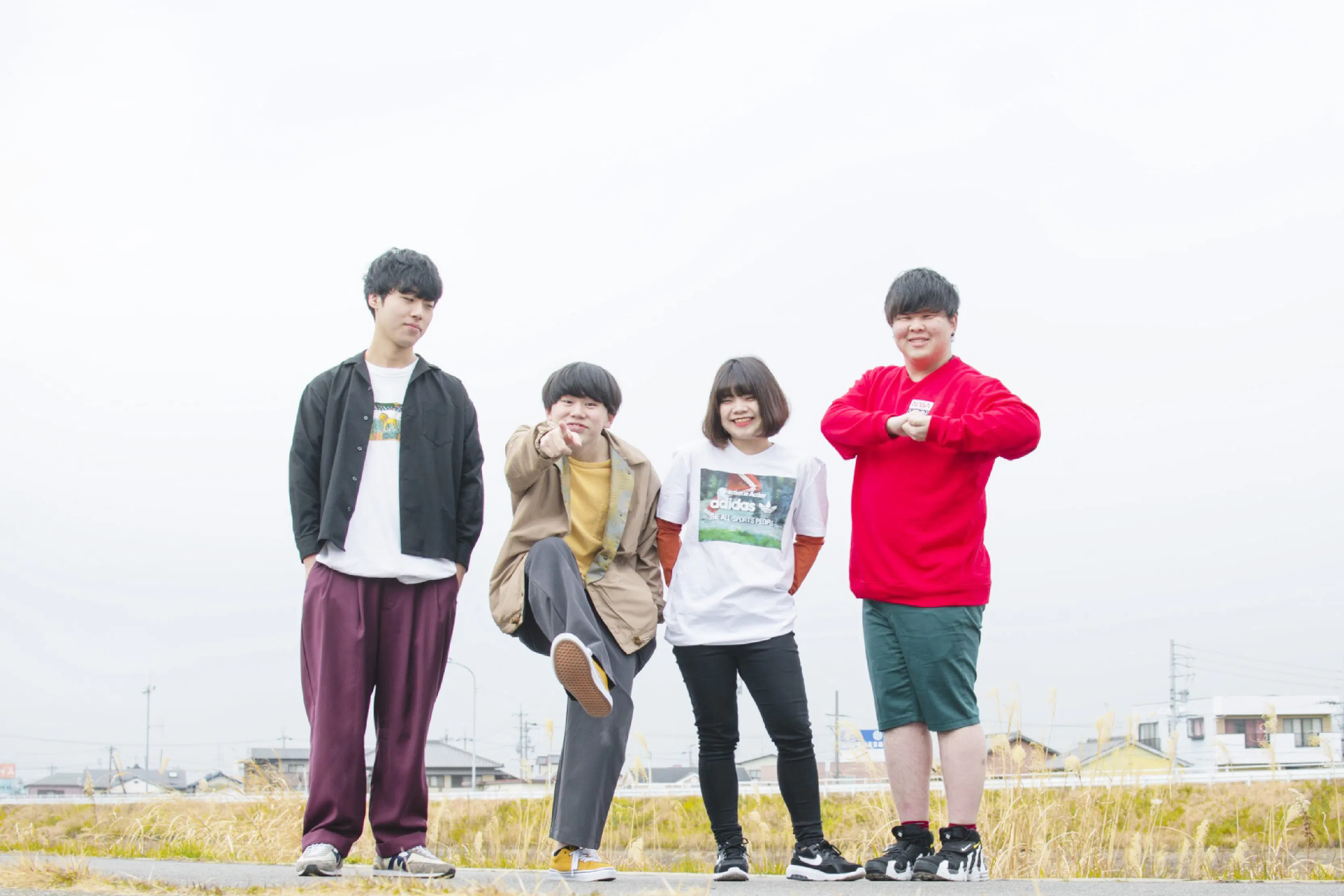 (左 Gt.石濱優/Vo&Gt.細川尚弥/Dr.石黒瑞穂/Ba.小栗翔 右)
