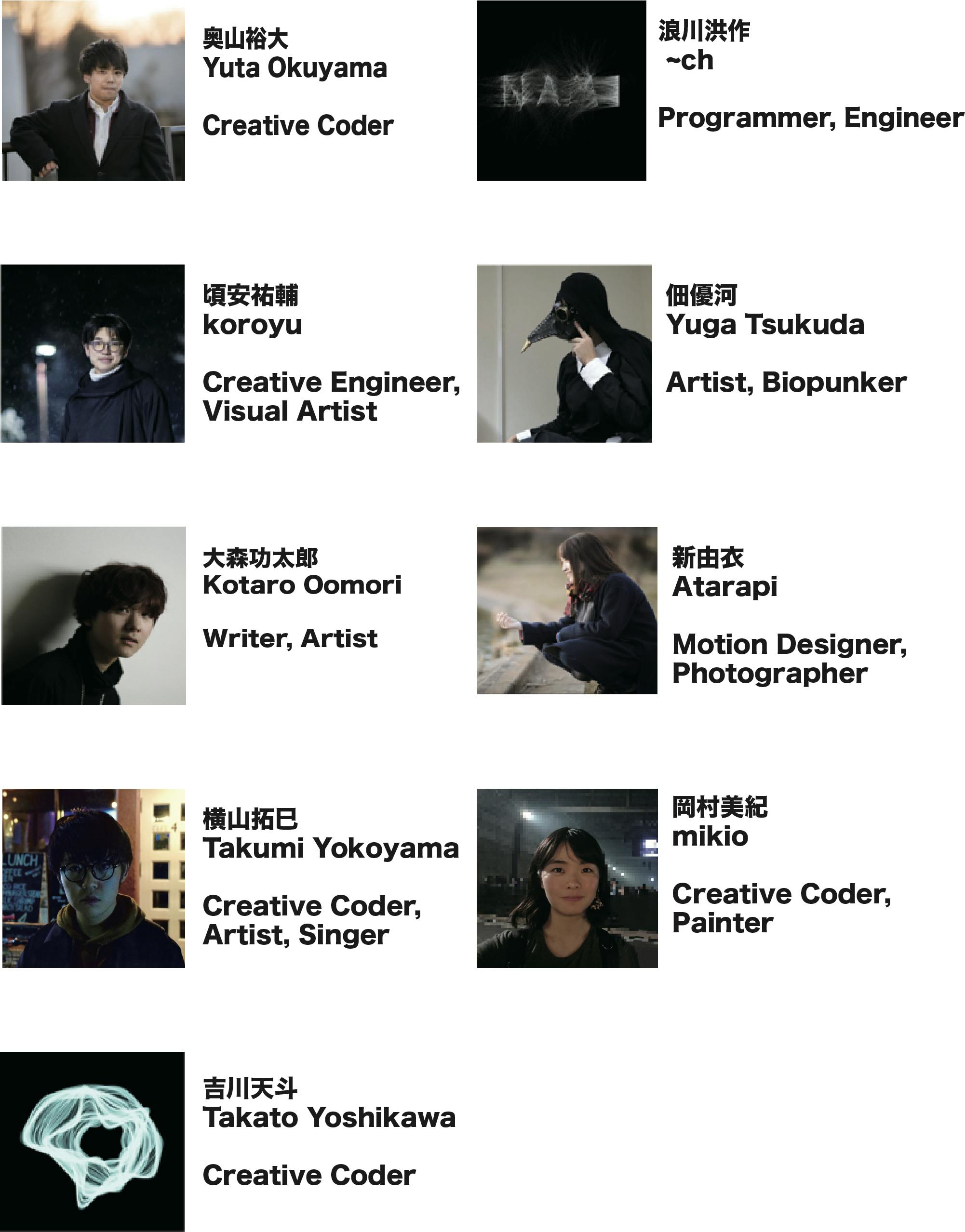 弊団体には個々が自分の奥底から湧いてくるものと真摯に向き合い、テクノロジーとアートの分野を軸に表現活動をする学生が集まっています。