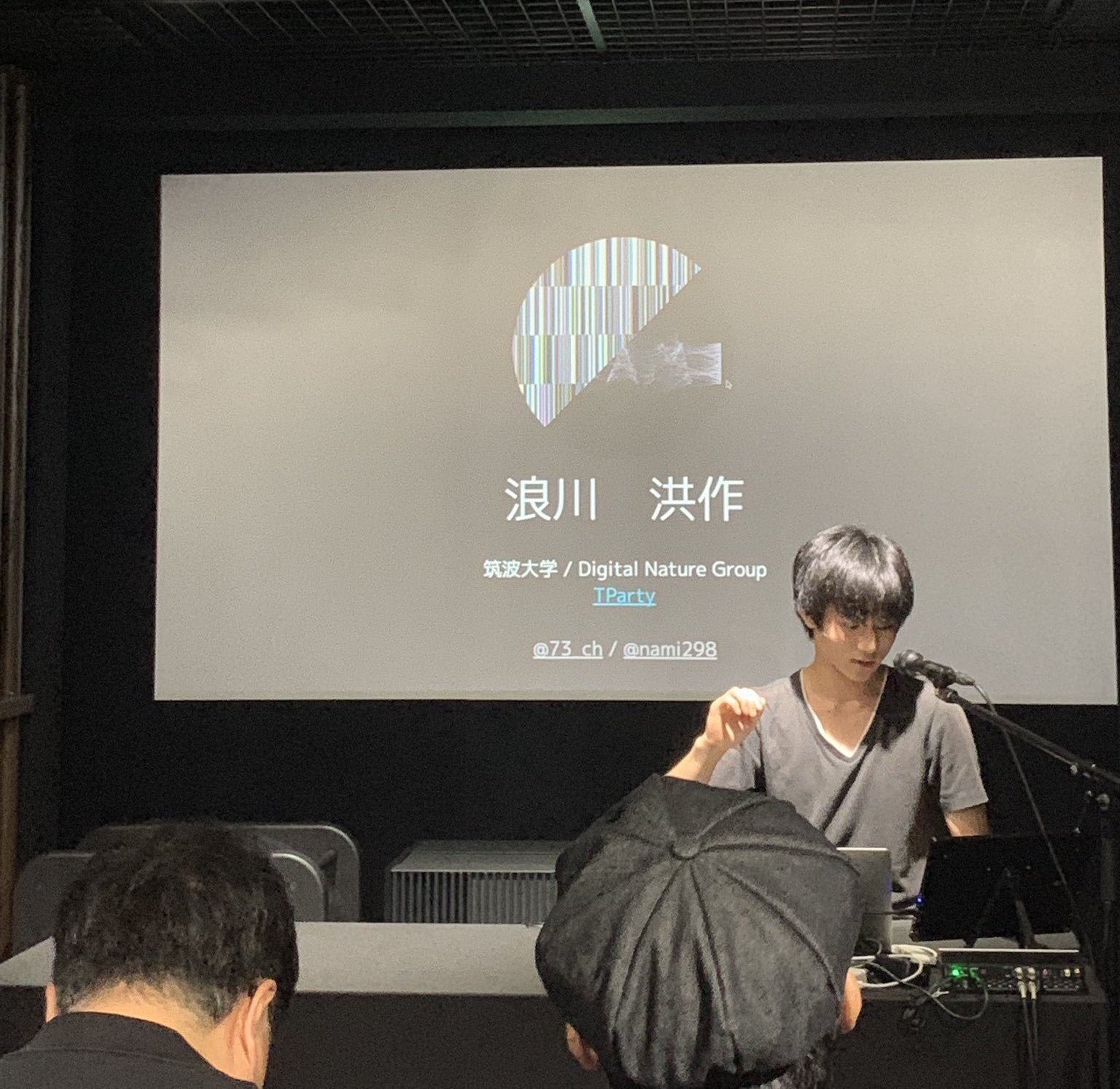 Node for MaxというMaxのパッチの中でNode.jsのプロセスが起動でき、簡単にやりとりができるようになる機能を中心に、再生されている楽曲からリアルタイムで歌詞を取得するパッチやシェーダーによるライブコーディングのパッチなどについて技術解説を行いました。