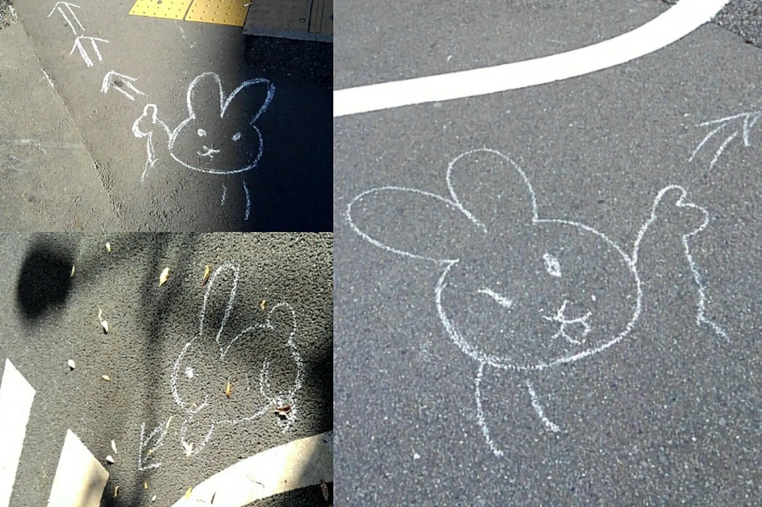 有難いことに「うさぎナビ」は、故意に消されることはないのですが、明日の雨できっと消えてしまうでしょう。展示は明後日で終了なため、描きたす予定はありません。