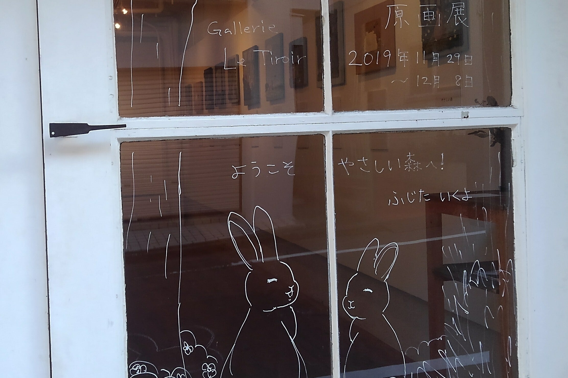 とうとう昨日から『やさしい森』原画展がスタートしました!寒い平日に足を運んでくださった皆様、ありがとうございました。これから行こうかな?と考えて下さっている皆様、お待ちしております!ギャラリールティロワは住宅街にあるため特に目印になるような建物住が周りにありません。なので、東京メトロ東西線早稲田駅1番出口からギャラリーまで、要所要所に、道路にチョークでうさぎの目印を描きました。ニューヨークのギャラリーがオープニングレセプションの時などに、ゲストをガイドする手法です。消えてしまっている可能性もありますが、ヘンゼルとグレーテルのように、うさぎをたどってたどり着いていただければ幸いです♪また、クマの返礼品をご選択された方には本日(11/30)午前中に、ゆうパックにてお届けになります。クマ以外をご選択された方は、昨日のお届けとなっていると思いますが、万が一返礼品が届かなかった方がいらっしゃいましたら、メッセージをお願い致します。クマの返礼品につきましては、茶色のリボンをほどいていただくと、台座からはずれるようになっております。引き続きどうぞよろしくお願い致します!