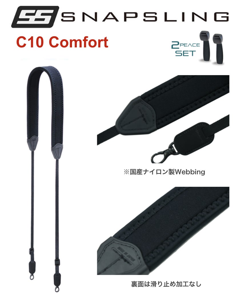 SNAPSLINGはストラップのネック部分がネオプレン製(国産ウェットスーツ素材)でできており、首や肩への負担を軽減することが出来ます。