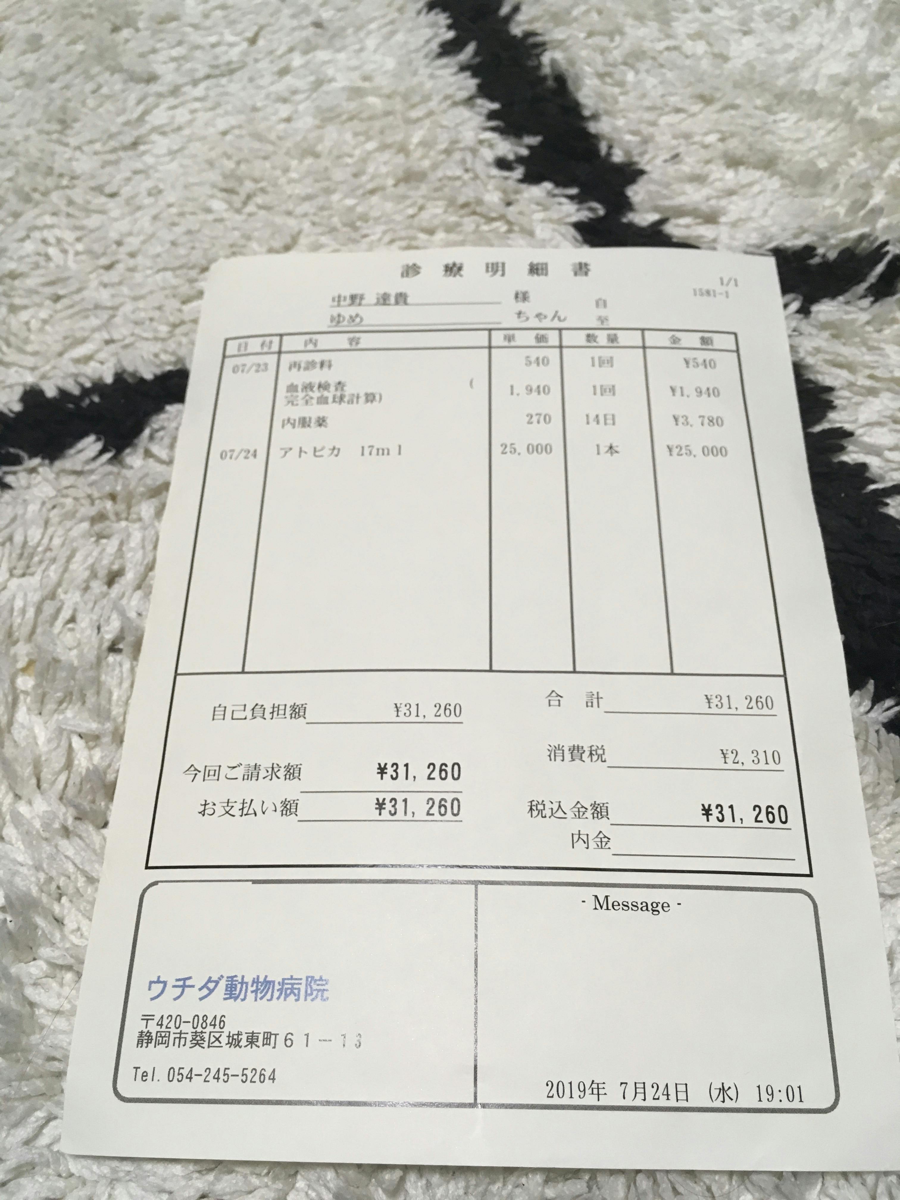※ペット保険へ申請の為、領収書が手元にありませんが、毎月通院しております。