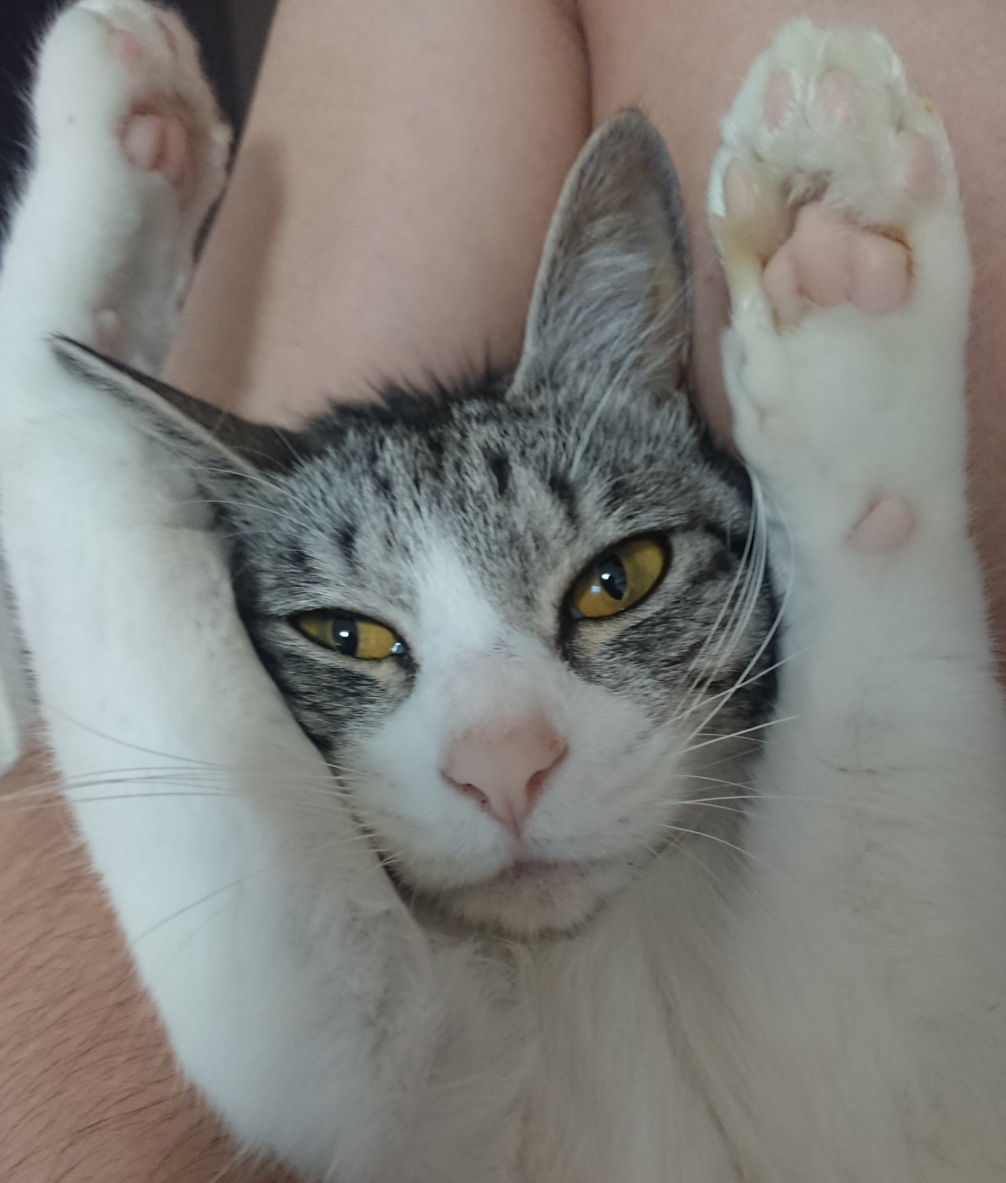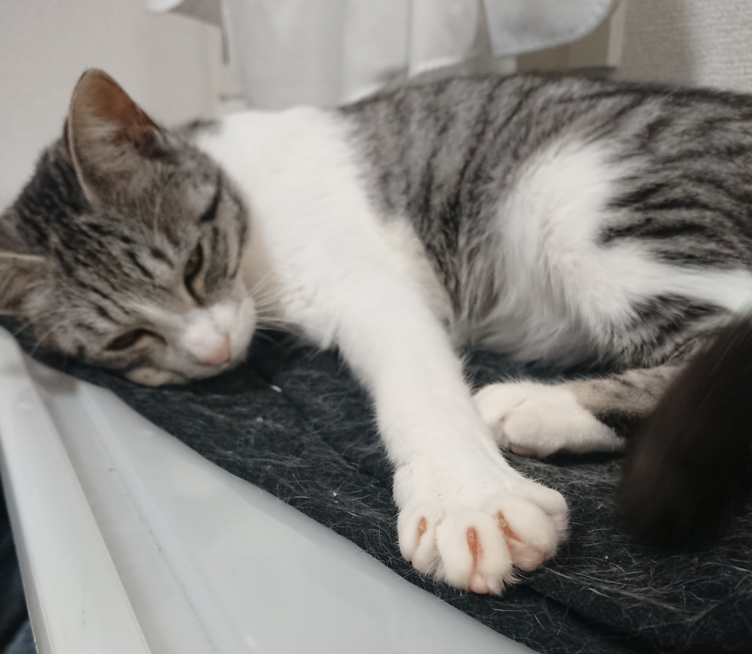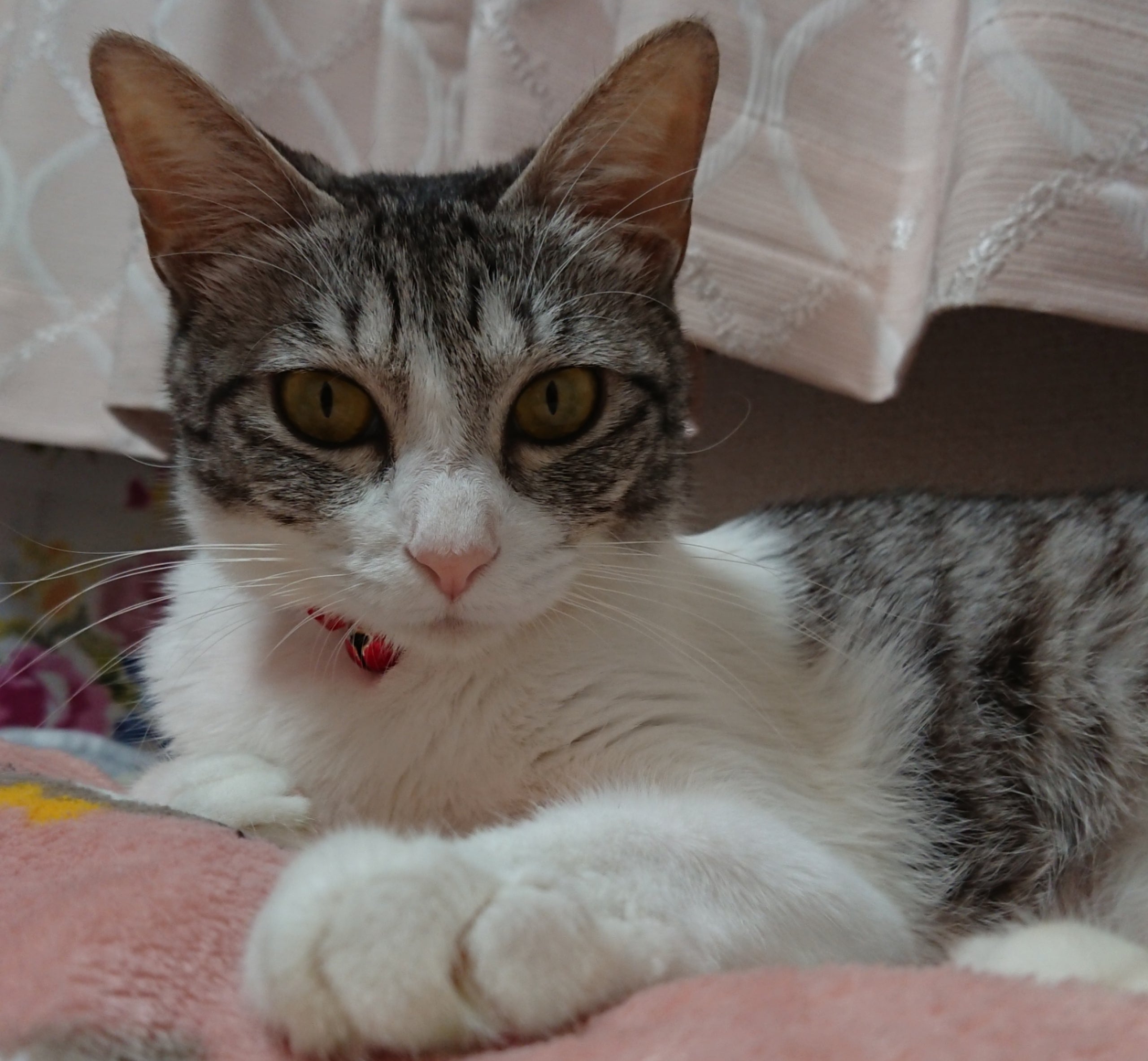 (1年前のゆめちゃん。貧血が酷く、元気もなくて肉球やお鼻のピンクが薄い色をしています。呼吸もはやいです。)