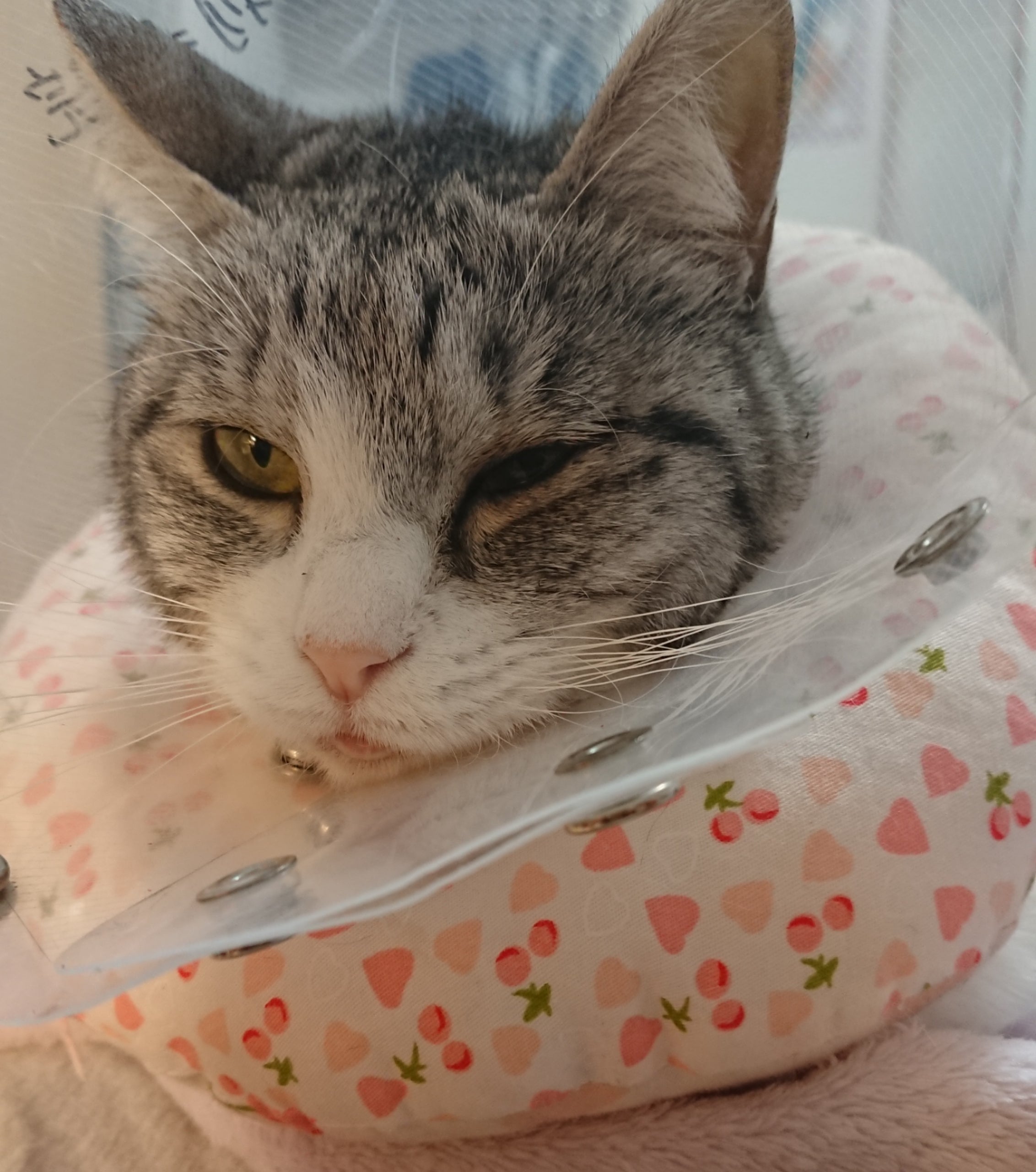 3月に数値が下がった時のゆめちゃん。お尻を舐めすぎて毛が抜け為カラーをつけています。
