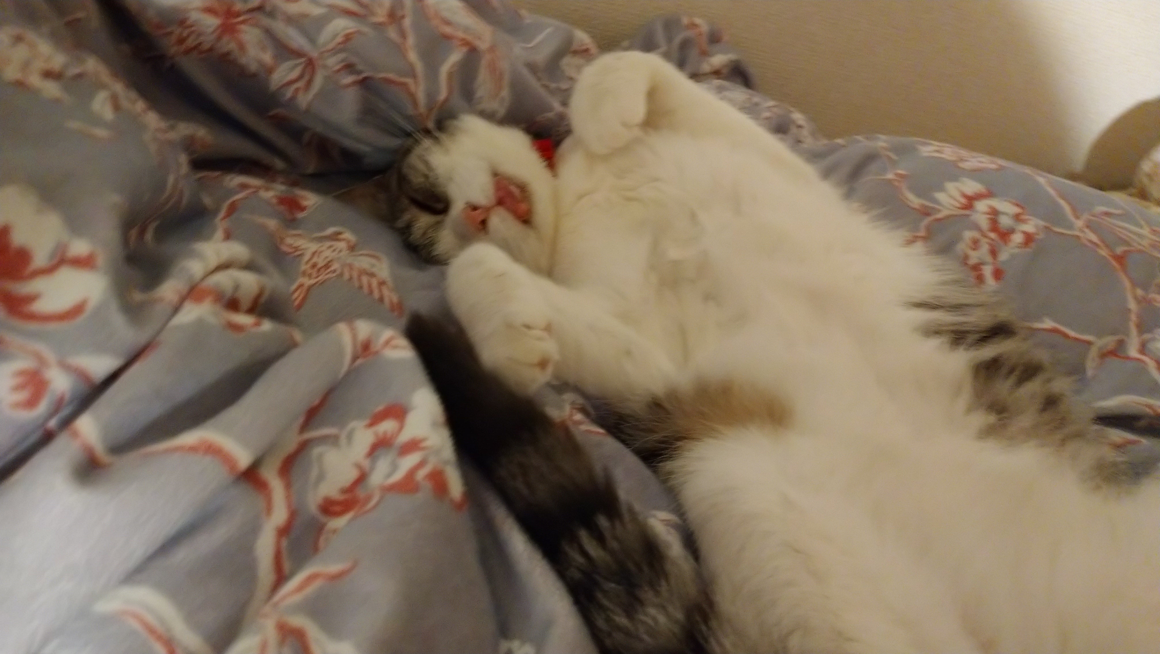今日のゆめちゃんは、よく眠っています。最近は調子が良いようで、猫じゃらしでも遊ぶ時間が数カ月前より増えています。