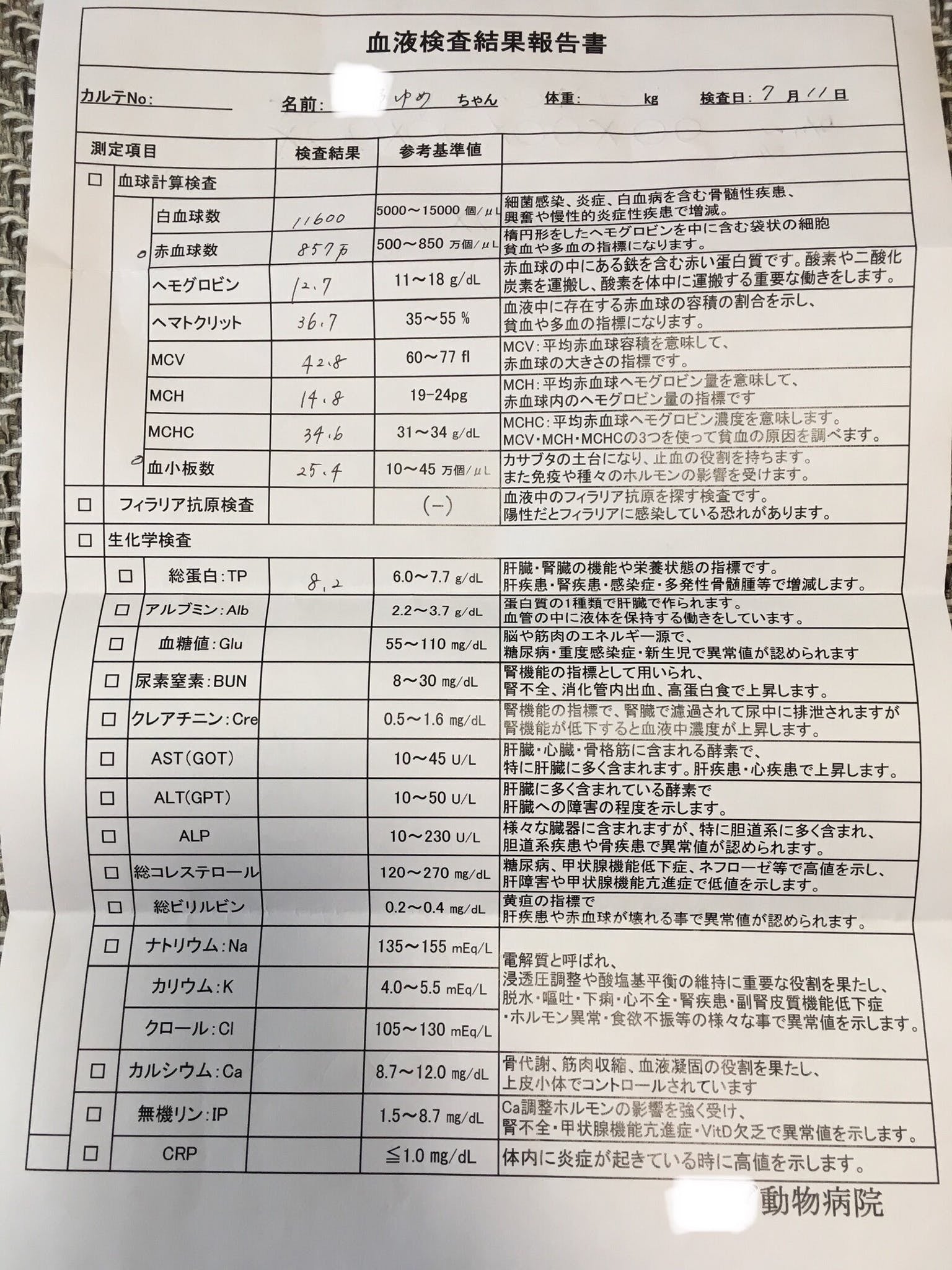 昨日(7/11)の土曜日にゆめちゃんの検査に行ってきました。
