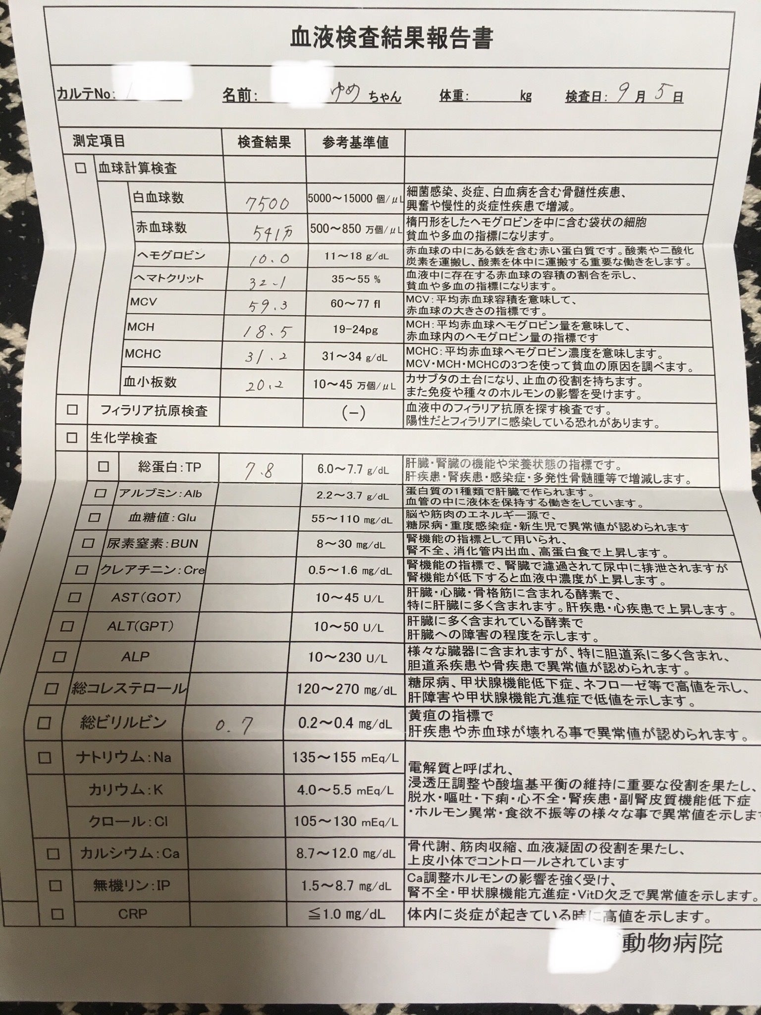 ゆめちゃんの様子については、正直あまり調子が良くないかな?と感じることもあり、血液の数値も前回と同様もしくは微増と考えておりました。