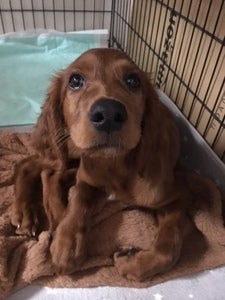 量販ペットショップで「日本で1頭しかいない犬種です」と高齢の夫婦が売りつけられたアイリッシュセターが(もちろん飼えるはずもなく)一時預かりという形で生後2ヶ月半で私の元へやってきました。