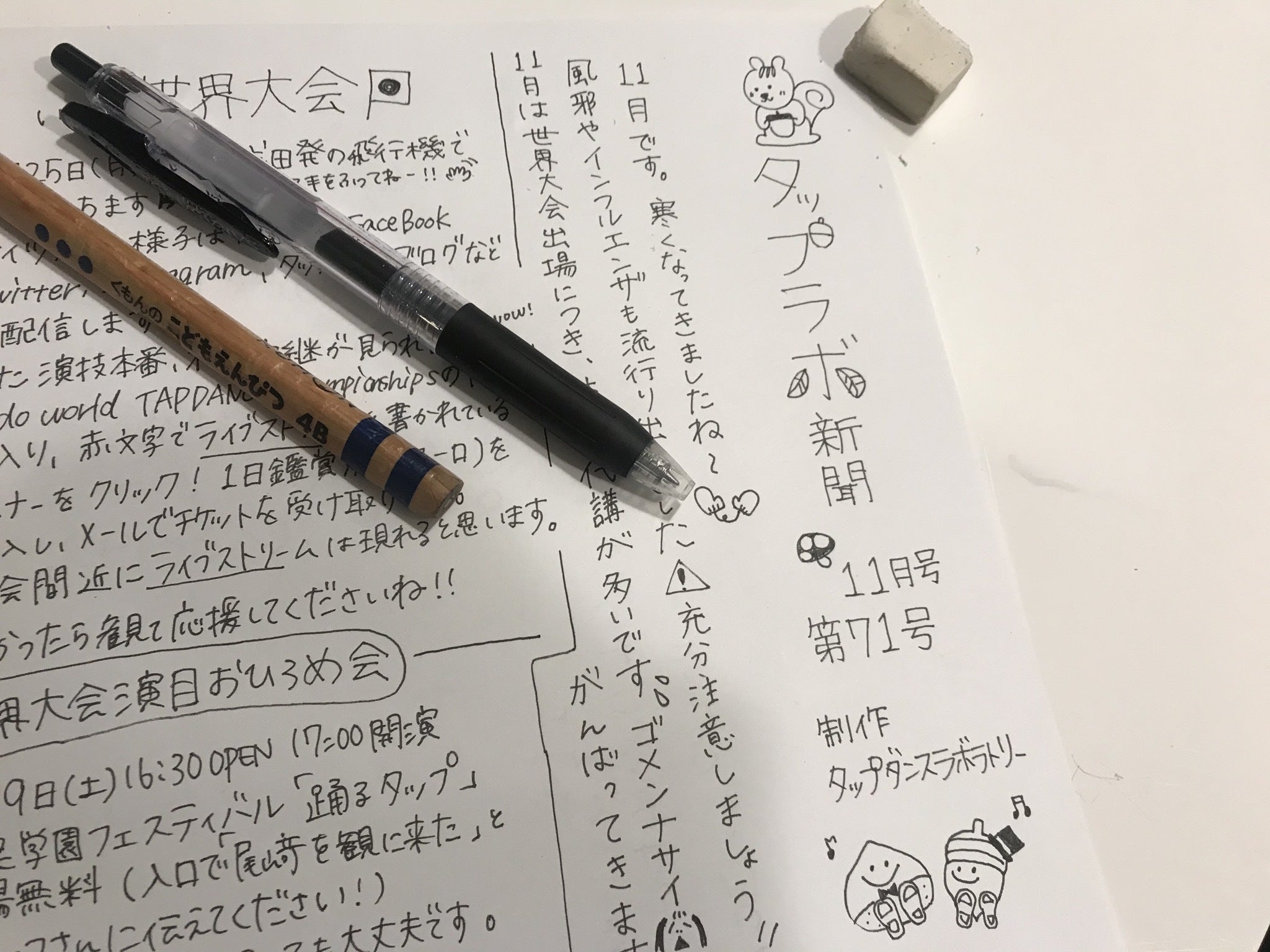 私のタップダンスのお教室では、毎月、手書きの新聞「タップラボ新聞」を発行しております。
