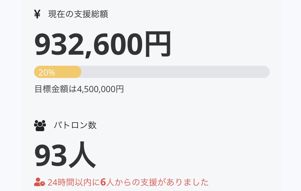 ですが、沢山のご支援、メッセージ、そしてSNSでシェアいただき、あっというまに93名の方にご支援いただきました。