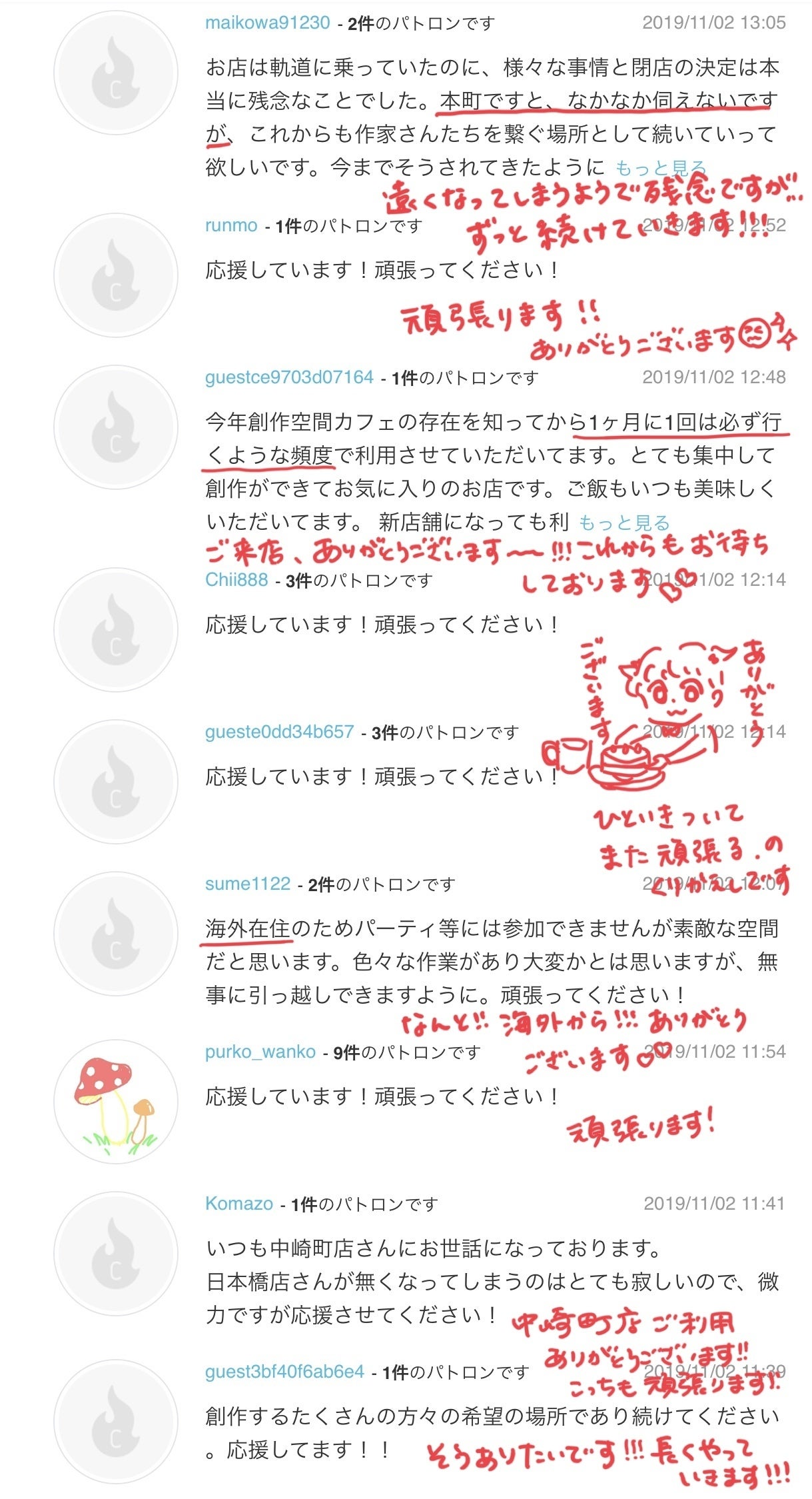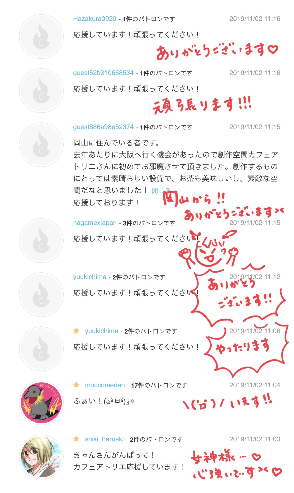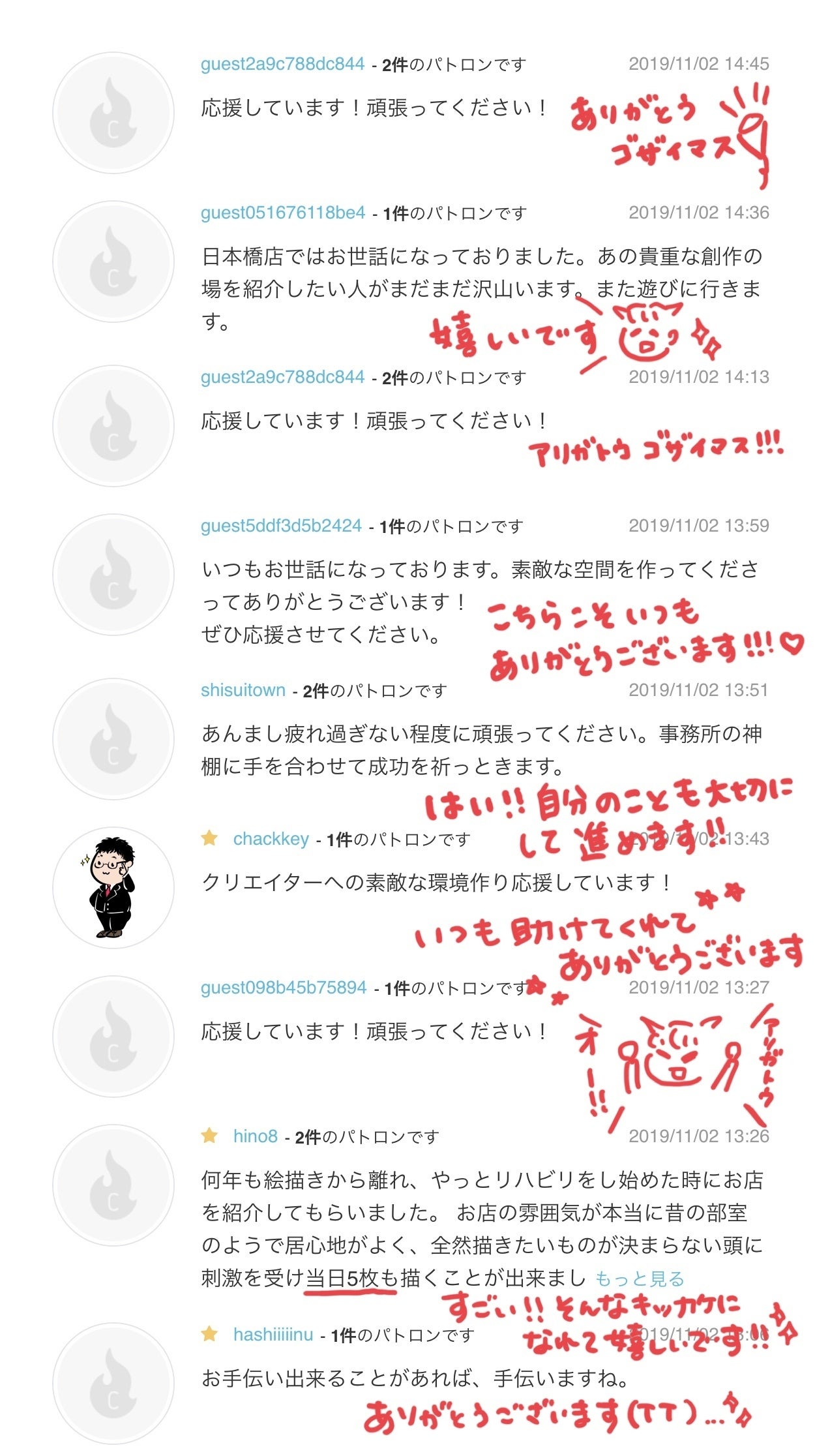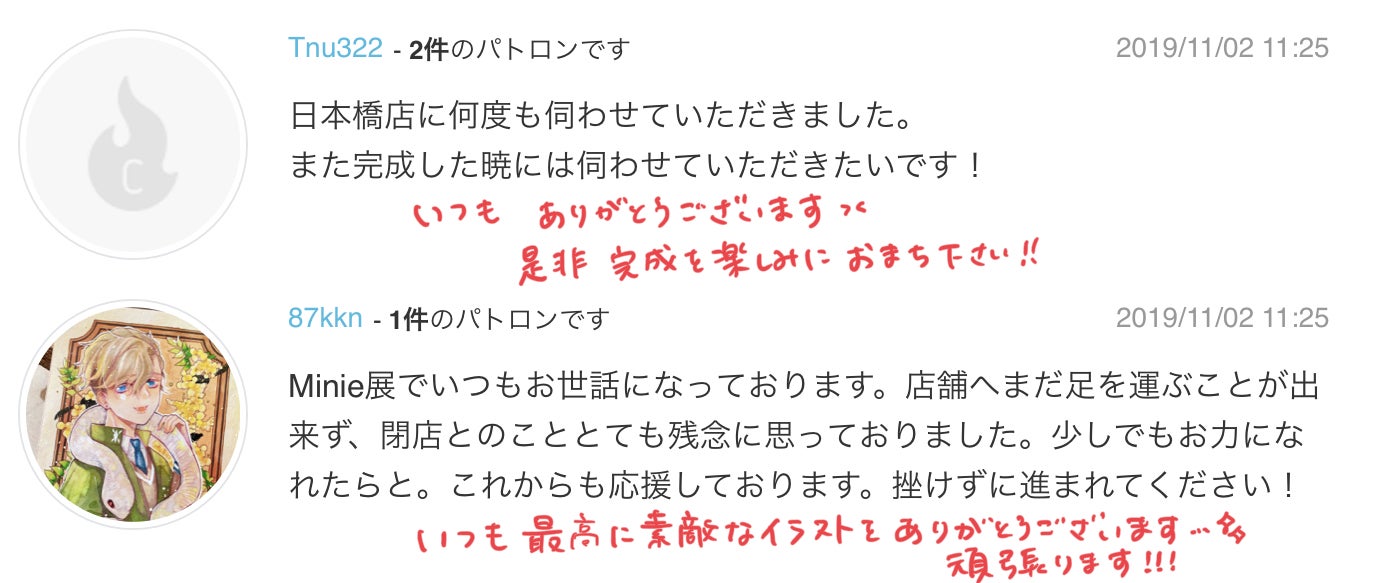 皆様のメッセージ、本当に嬉しくて何度も読み返しております。どうてもメッセージにも返信したくて、手書きですがちょっとずつ書きました。