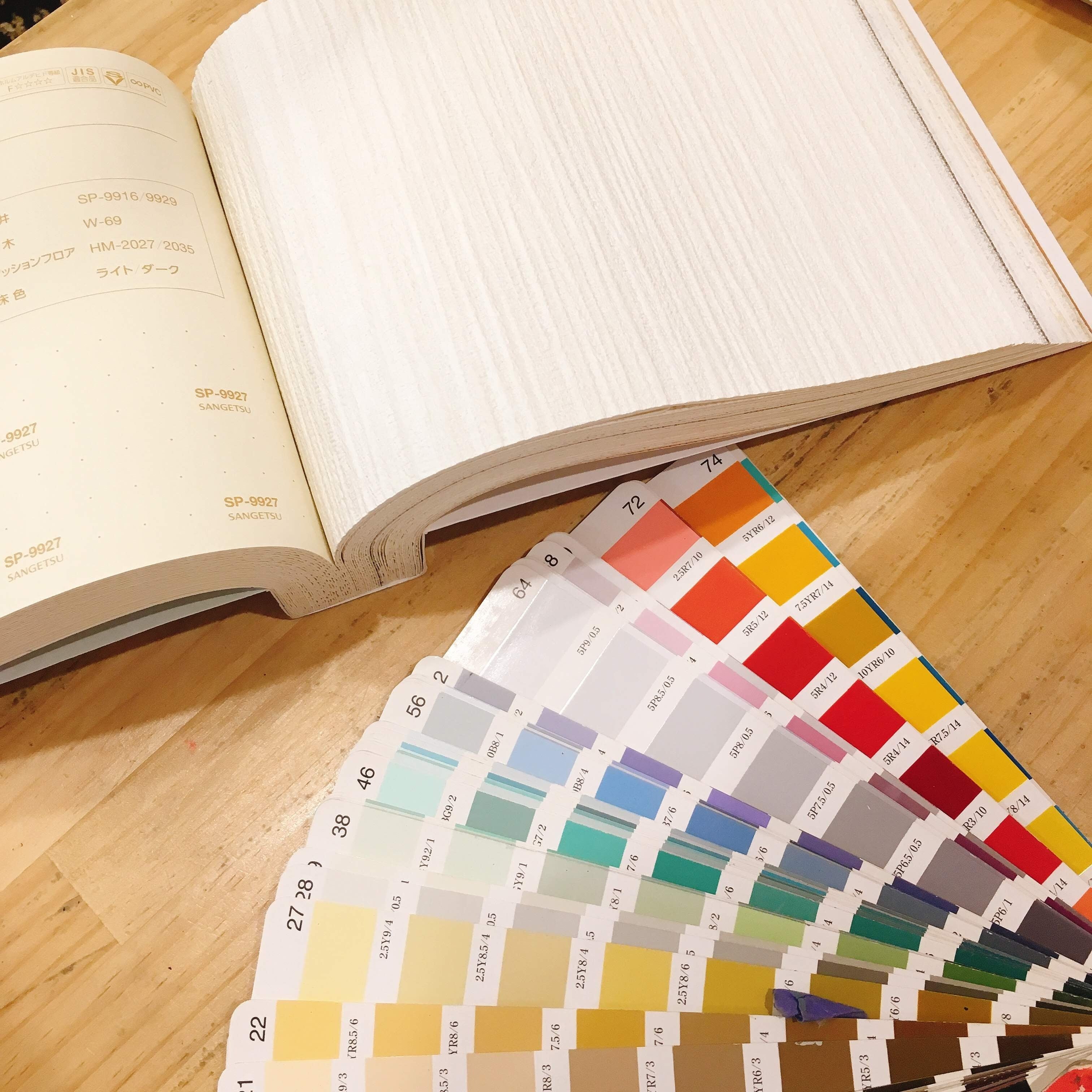 昨日は業者さんとの打ち合わせで、ビルの入り口からカフェまでの廊下&階段部分のクロスと塗装の色を選びました!