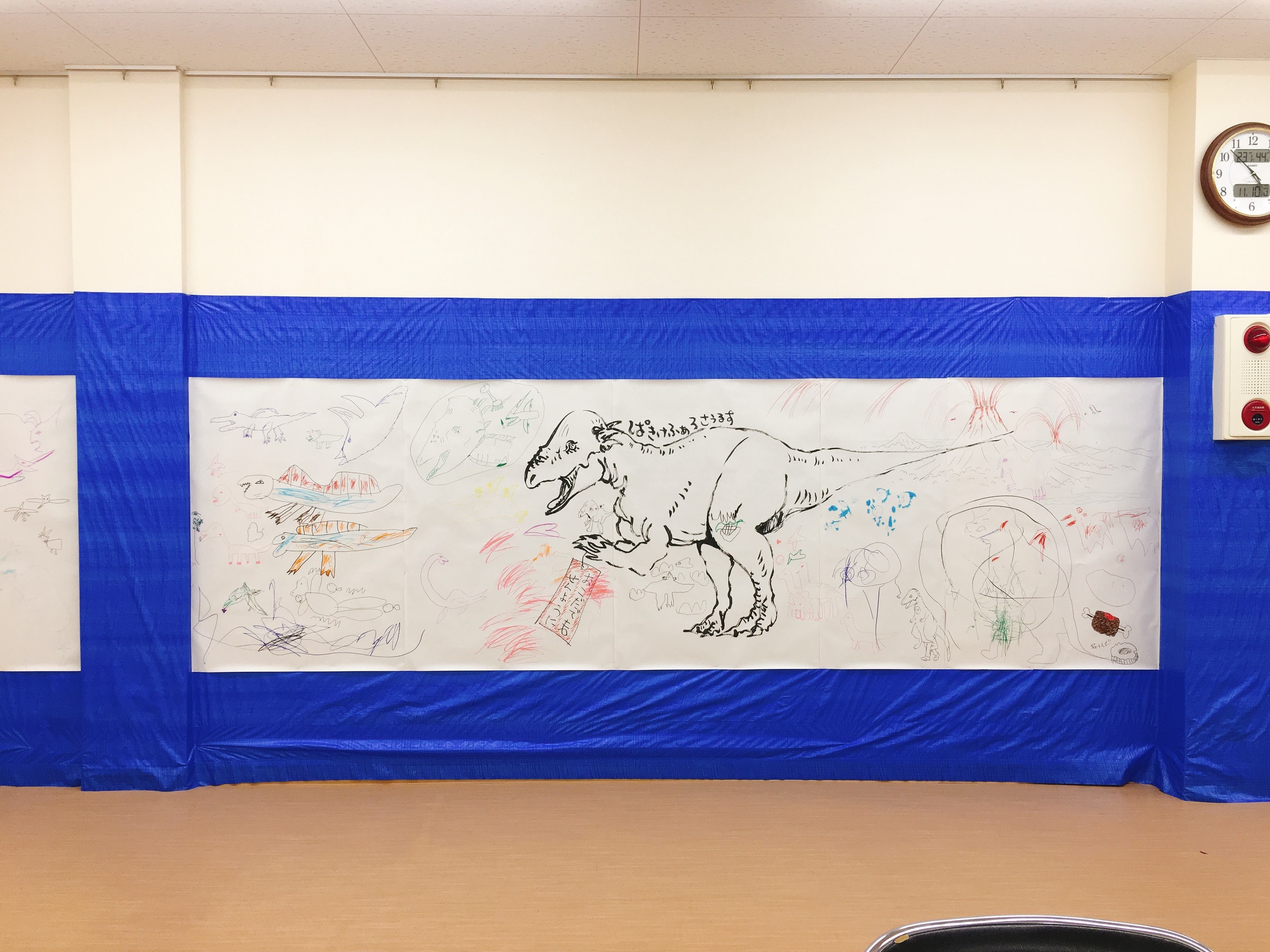さらに特別企画で部屋中に貼っていただいた模造紙にでっかい恐竜を子供達といっぱい描きました!これは大盛況でした〜♪