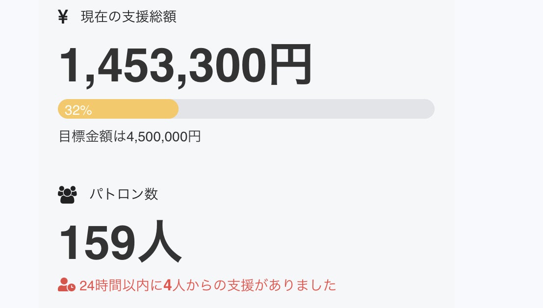 大変ありがたいことに今日もまたまた支援者が増えまして、32%まで集まりました!!!