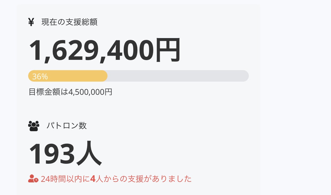 今日もまた新たにご支援いただき、目標金額の36%に到達しました!!