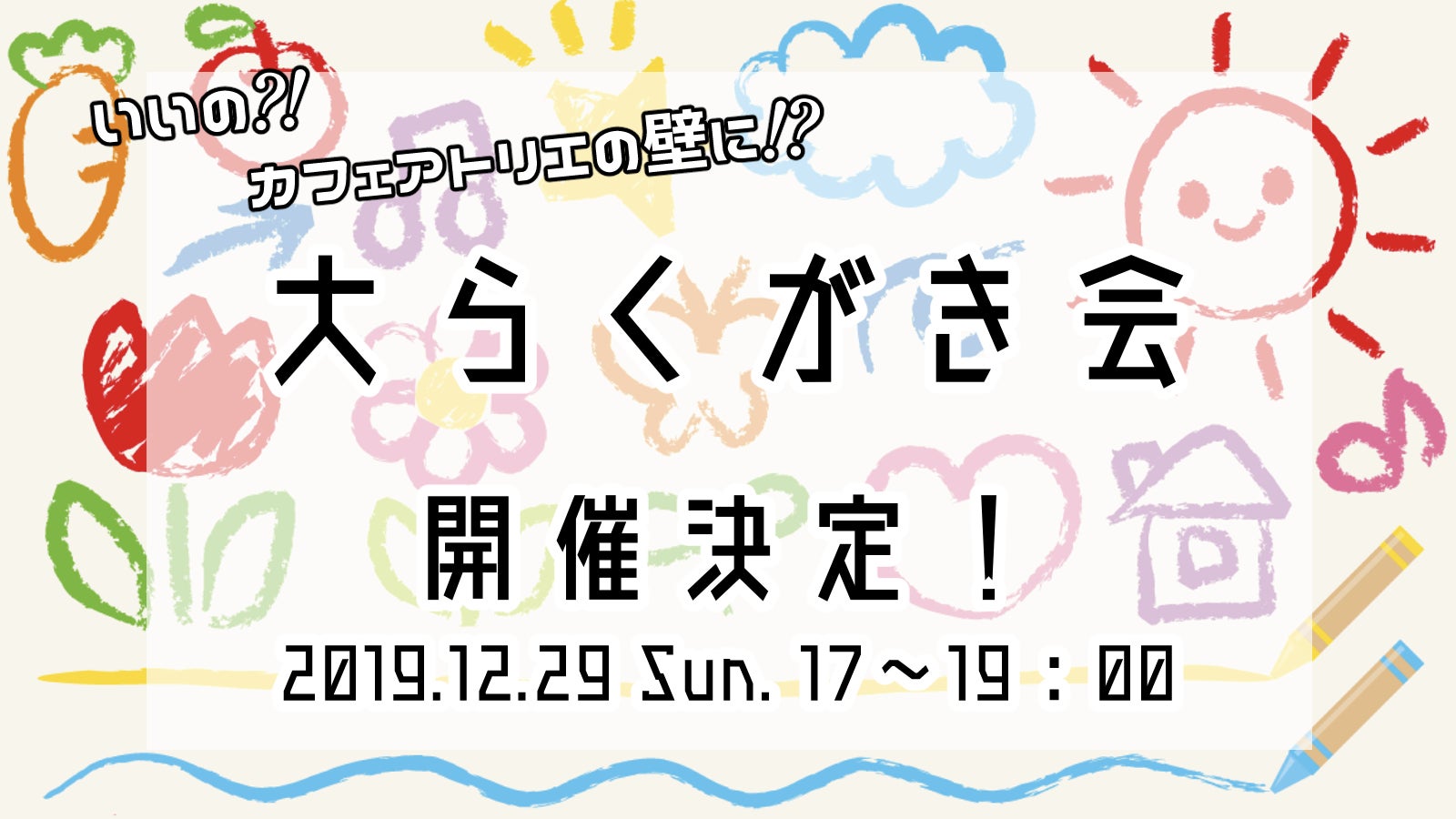 年末なので、どれくらいの方に集まっていただけるかはわかりませんが、参加いただける皆さんでクロージングパーティ&大らくがき会&大忘年会という形で開催したいと思います♪