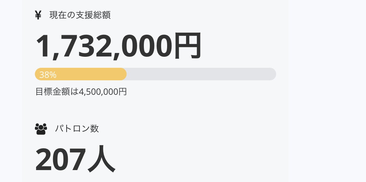 またまた支援者が増えまして、ついに目標金額の38%に達しました!!!ありがたいです!