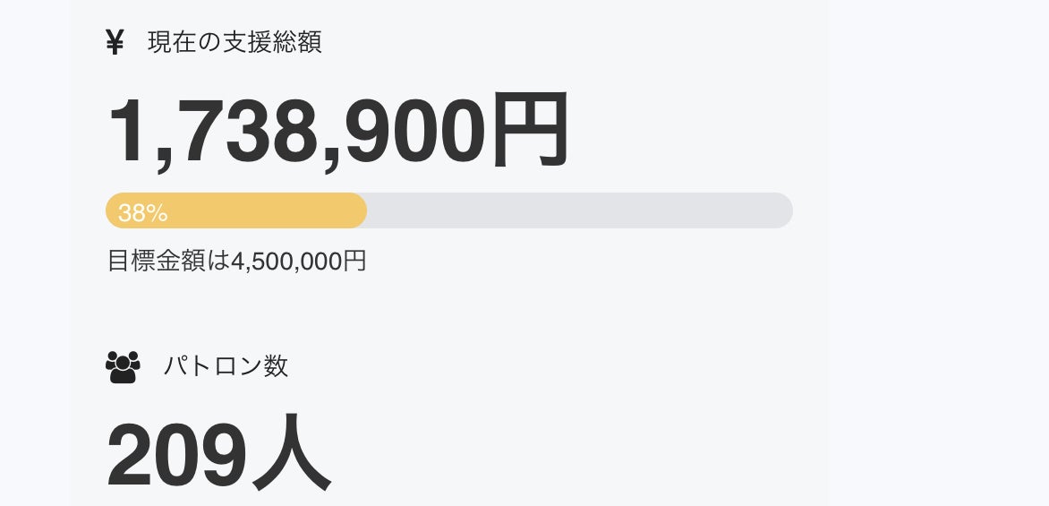 ありとうございます!支援者が増え、209名様になりました!!!