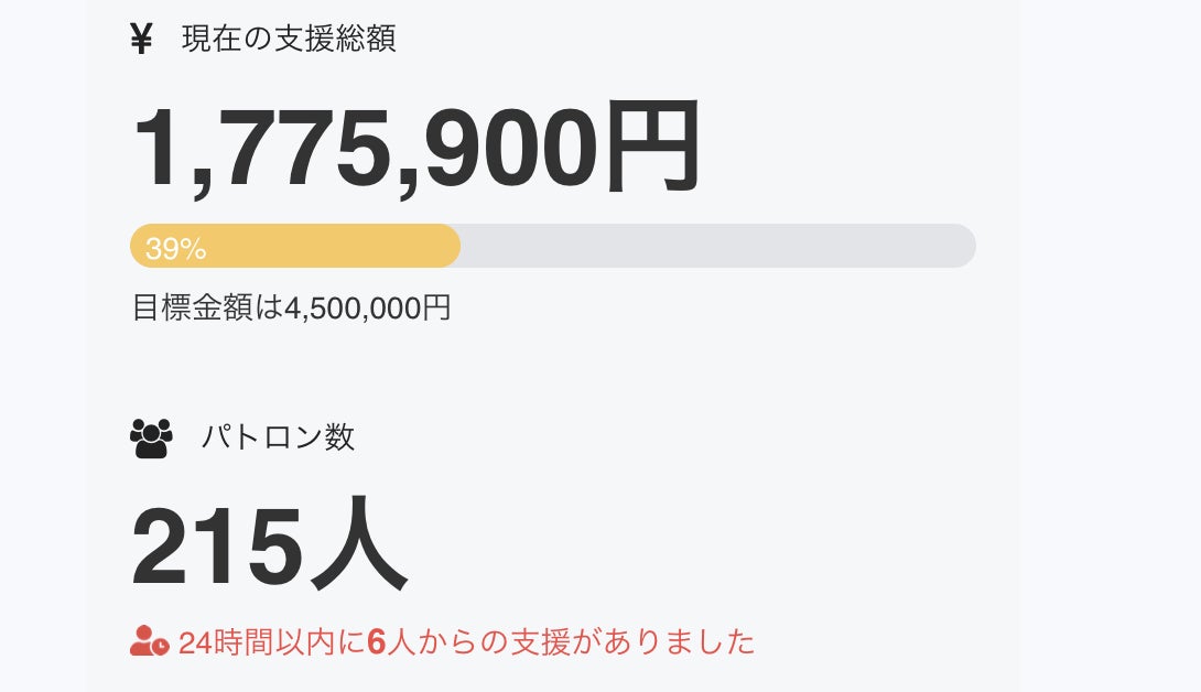 おかげさまで、あとちょっとで40%に達しそうです…!!!支援者数も215名になりました!ありがとうございます!!(> <)