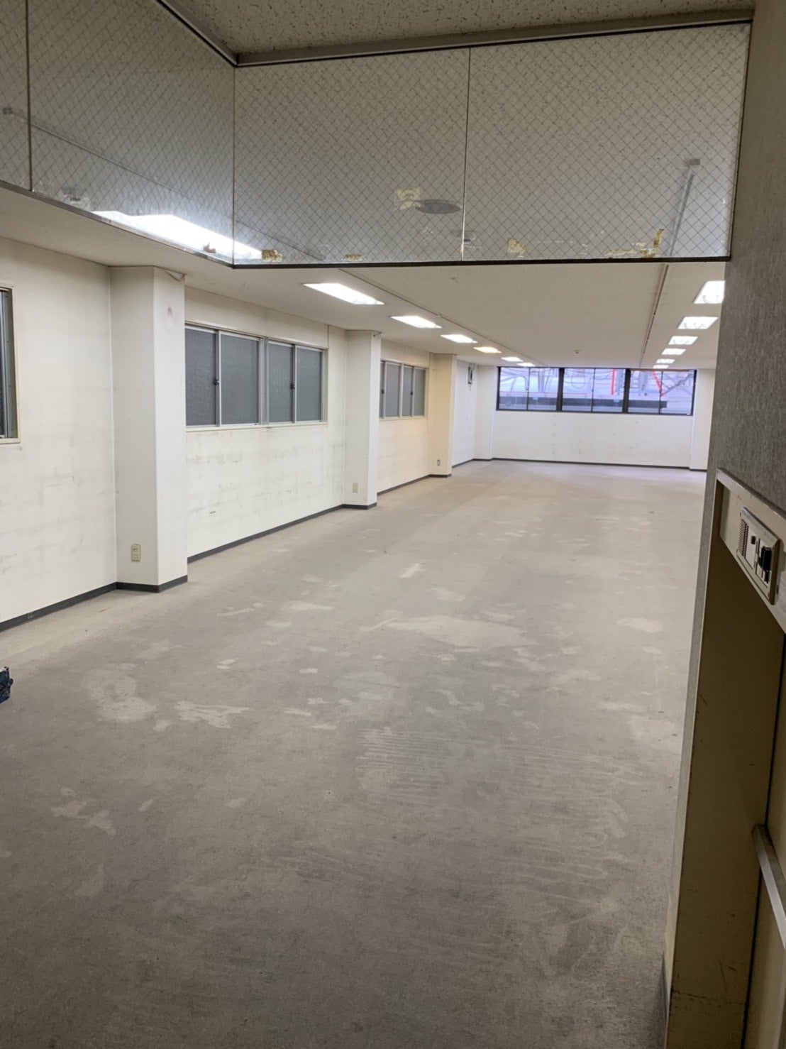 そして、改装前の状態ですがここがカフェになります〜!!!広いです!!!お手洗いとキッチン(下の写真)は壁を作って分ける予定です。